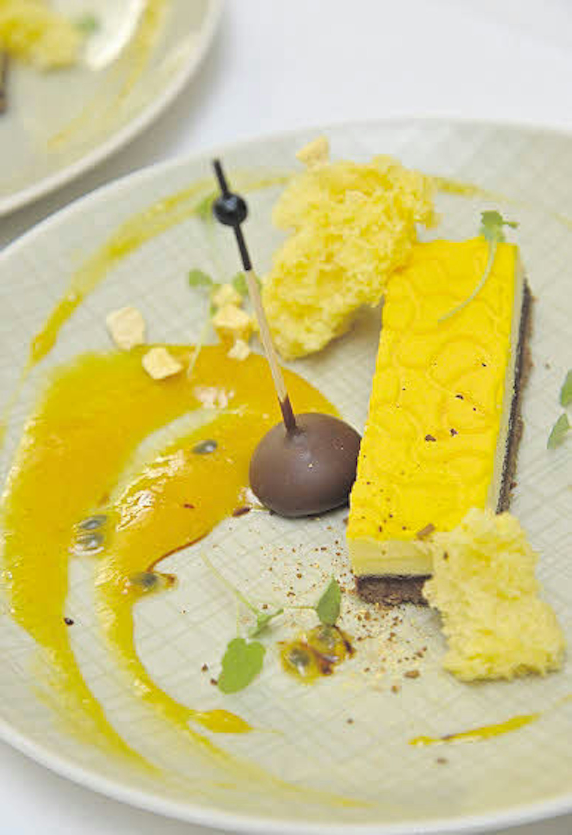 Für die Schleckermäulchen gab es gleich zwei Dessertstationen: Alejandro Wilbrand bot eine Kaffee-Kardamon-Kapsel mit Zuckerwatte und Erdbeersorbet. Gregor Marx verblüffte mit einer Kreation aus dreierlei Passionsfrucht, Kaffee, Zimtblüte, süßem Anis und Mascarpone.