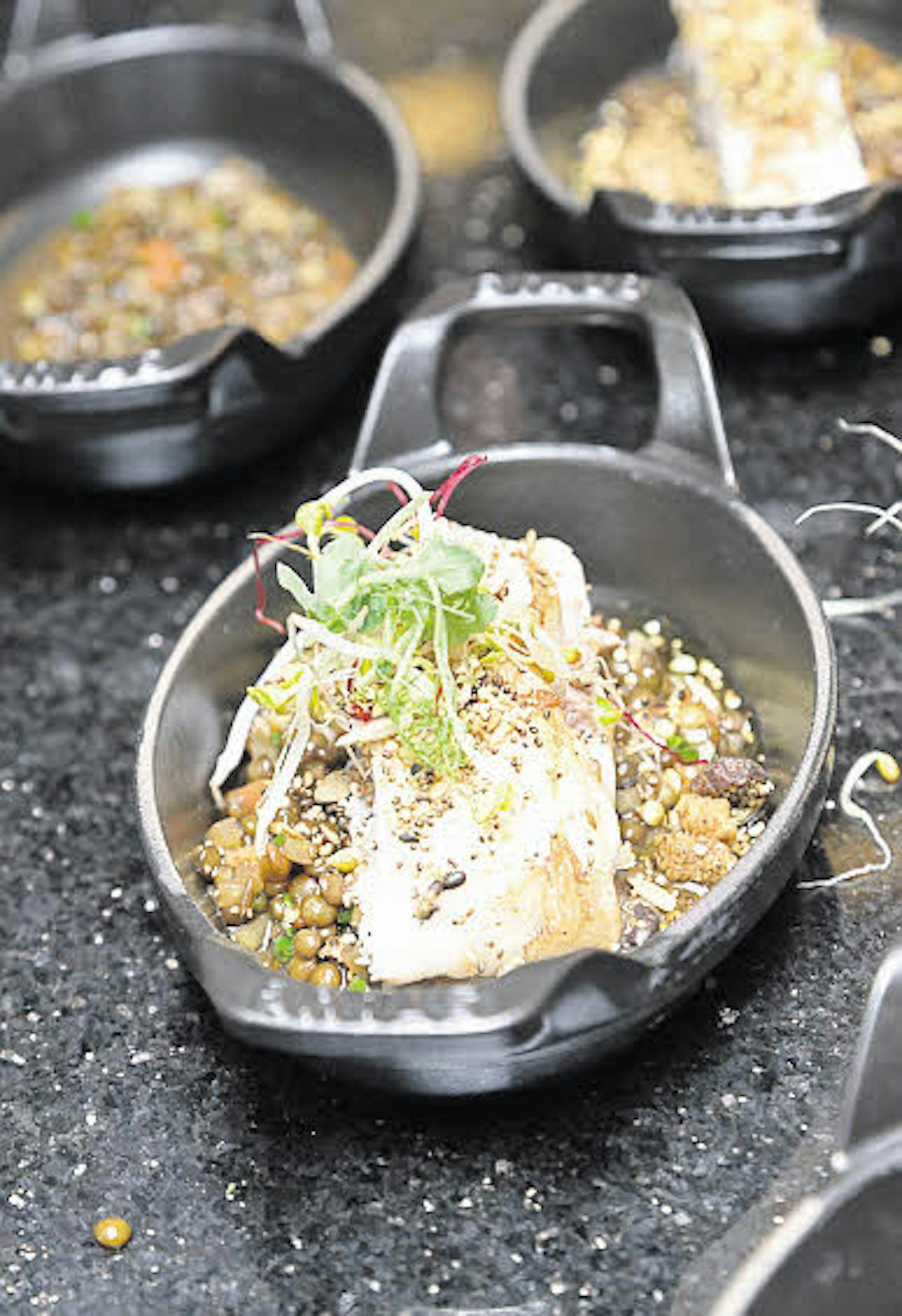 So mancher nutzte die Gelegenheit, Philipp Wolter wiederzusehen. Der hatte mit seiner Frau Tanja den Spatzenhof in Wermelskirchen zur Adresse auf dem Feinschmeckerradar gemacht und war dann zu neuen Ufern aufgebrochen. Der 43-Jährige kredenzte einen Waller, der auf einem Bett aus Holunderbeeren, Balsam, Linsen und Vinaigrette ruhte und mit Sprossen garniert wurde.