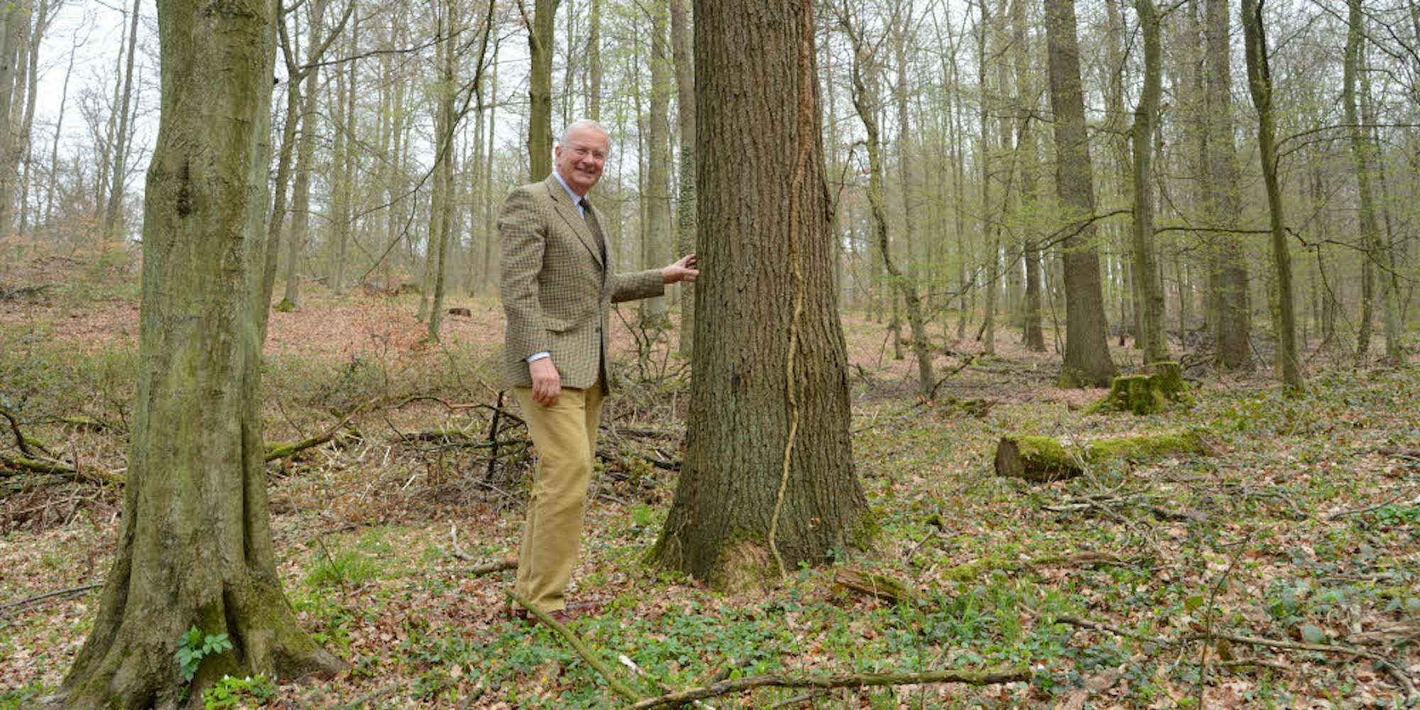 In seinem Wald bei Schloss Strauweiler hat Hubertus Prinz zu Sayn-Wittgenstein einen Begräbniswald eingerichtet.