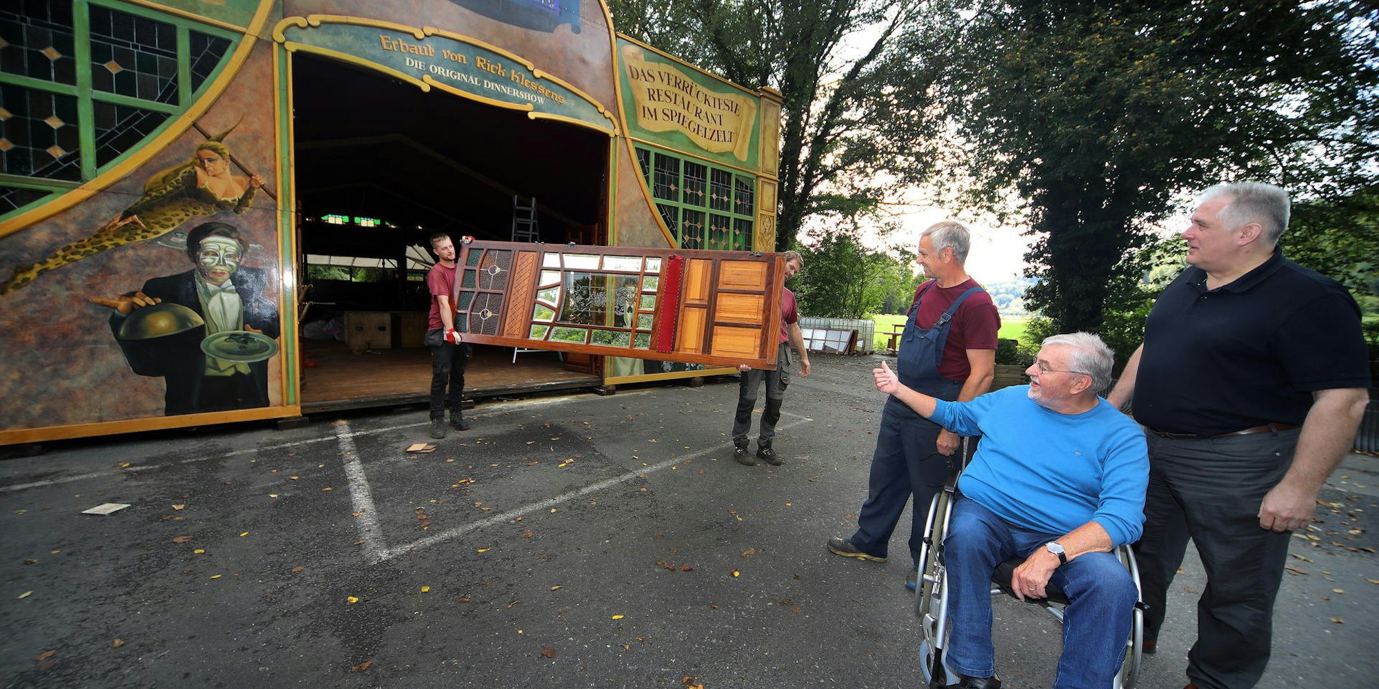 Odenthal – „Was mir wirklich gut tut,“ sagt der Mann im Rollstuhl, hält inne und schaut, wie eine Spiegelwand vorbeigetragen wird: „Was mir gut tut, ist, dass ich in Odenthal einen gefunden habe, der genauso verrückt ist wie ich und an den ich den Stab nun wirklich übergeben kann.“