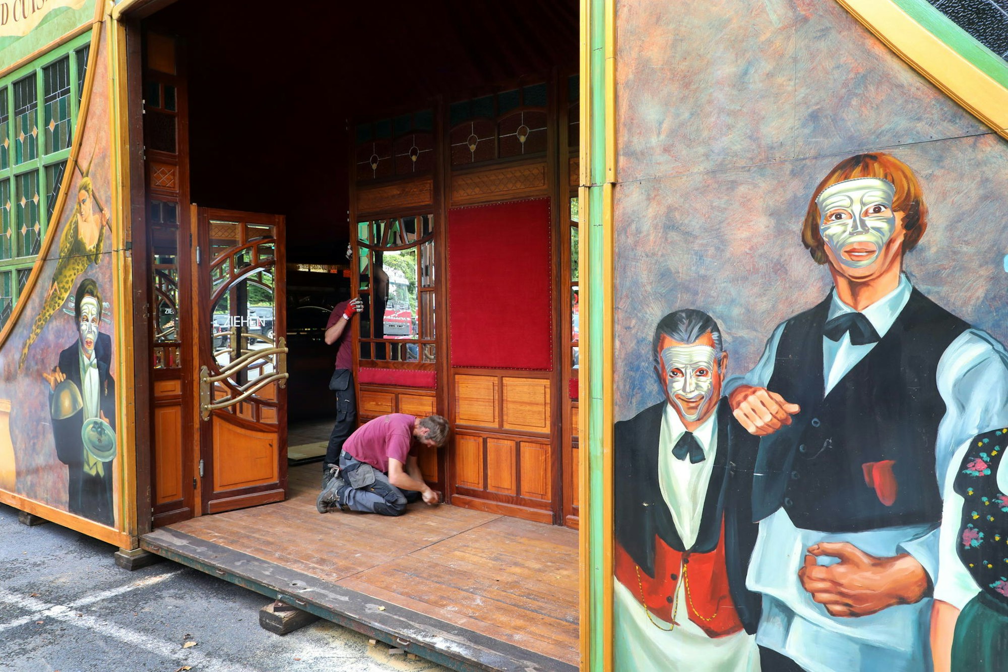 „Die 45 Tonnen waren 18 Monate in den zwei Containern verstaut, aber es ist alles in Ordnung“, sagt er zufrieden. Von Nordamerika bis Australien – das nostalgische Zelt ist schon rund um den Globus verschifft und aufgebaut worden. „Und jetzt wird es wieder die Gäste in Altenberg verzaubern“ sagt Adriaan Nijkamp strahlend. „Bei Markus Wißkirchen können die Menschen entdecken, was hier an Kultur wieder alles möglich ist.“