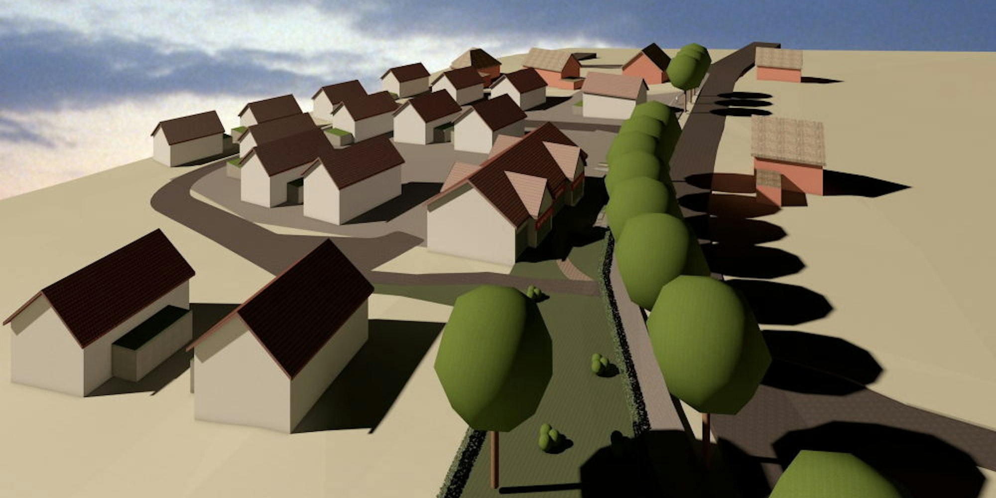 - 15 Einfamilienhäuser und ein Nahversorgermarkt auf 11500 Quadratmeter.