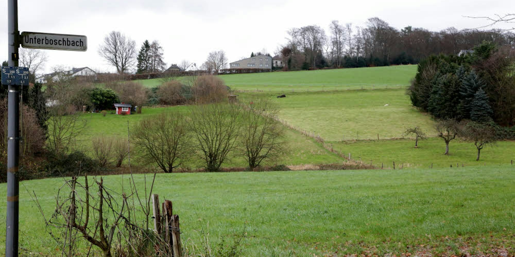 Bis hinunter zum Sträßchen Unterboschbach soll sich nach den Plänen eines Investors ein neues Baugebiet erstrecken. Das stieß im Bauausschuss auf Kritik.