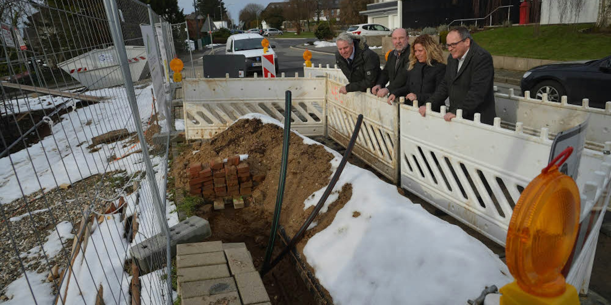 Künftige Baustellen sind für Glasfaser, hoffen Bürgermeister Lennerts, Uwe Koch, Nicole Holländer und Christoph Hagen (v.l.)