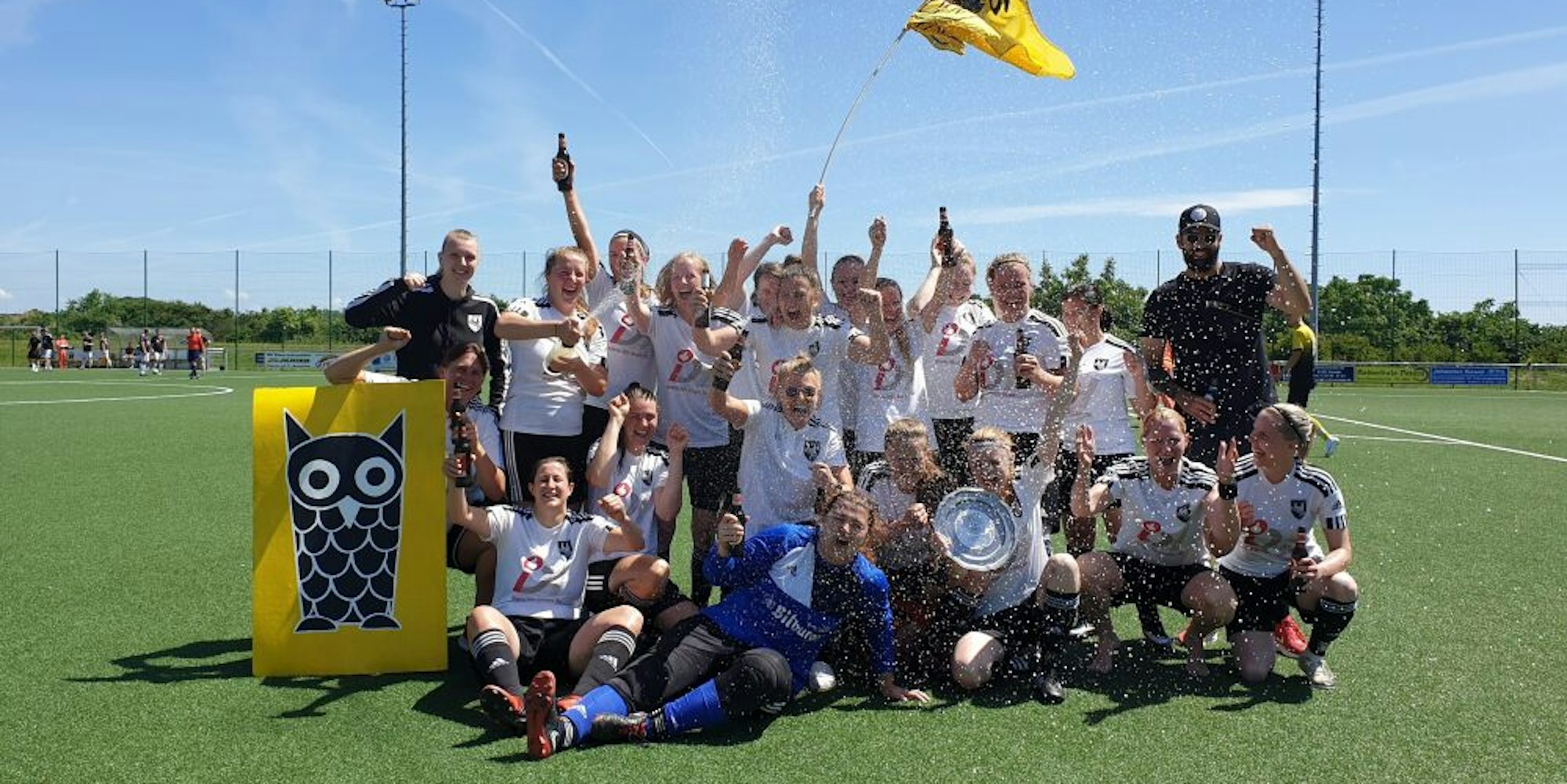 Die Fußballerinnen aus Marialinden jubeln nach ihrem Aufstieg in die Kreisliga A.