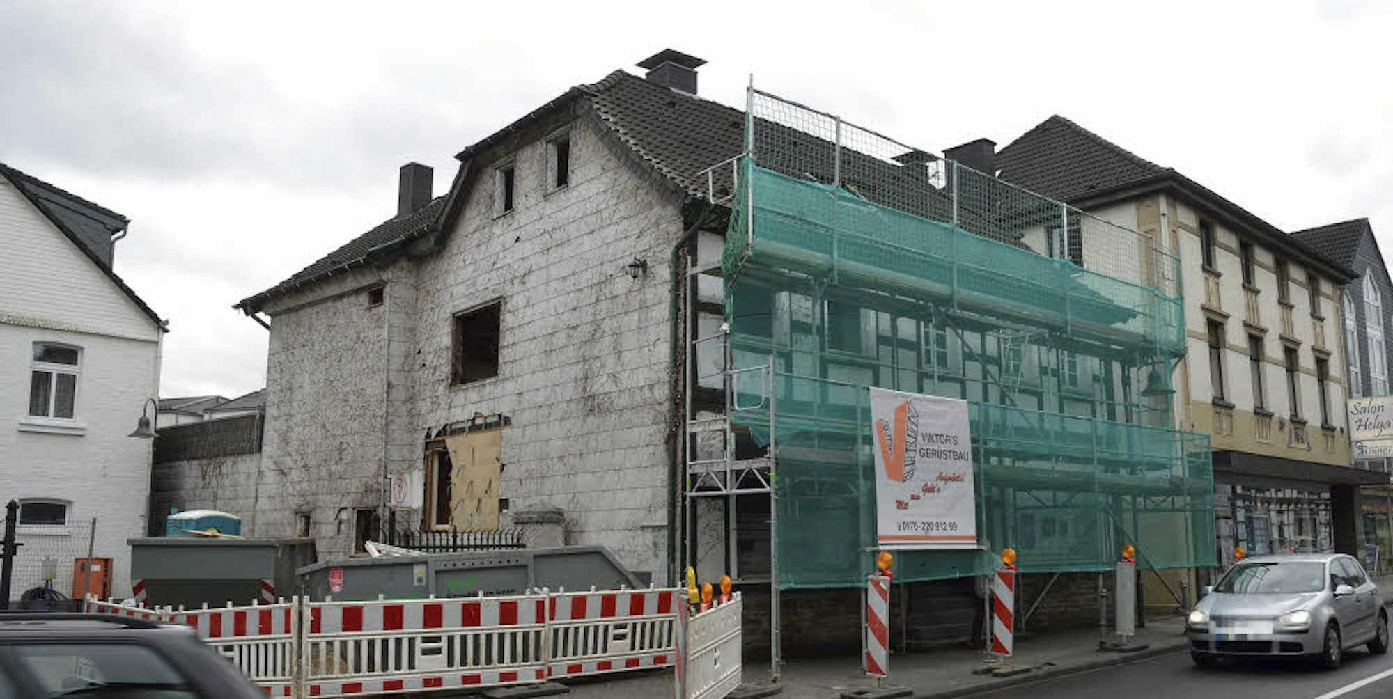 Das Haus Hoederath mit dem Baugerüst.
