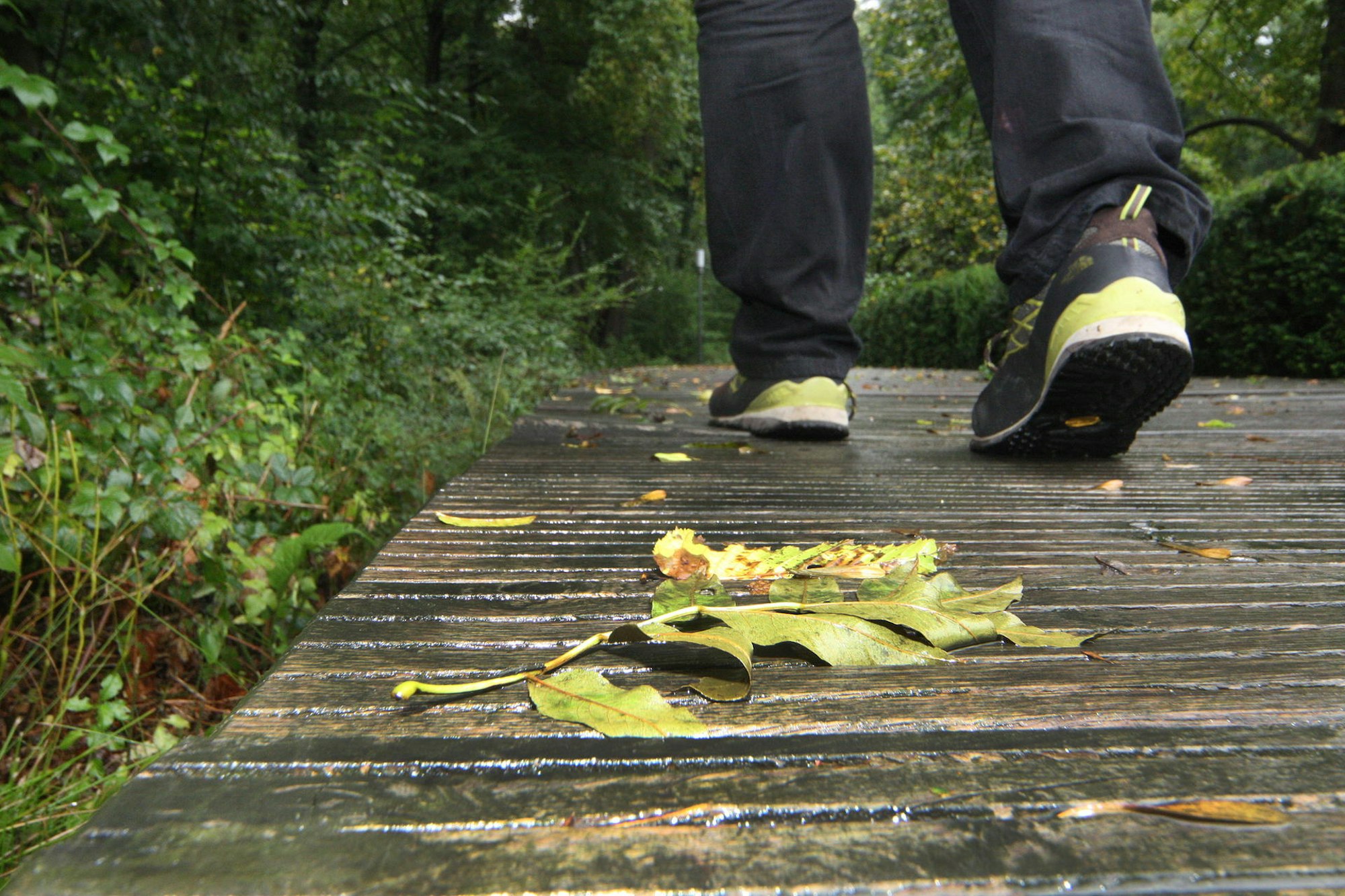 Viele Stege und Brücken gibt es im historischen Park. Blätter sorgen für Rutschgefahr auf dem Untergrund.