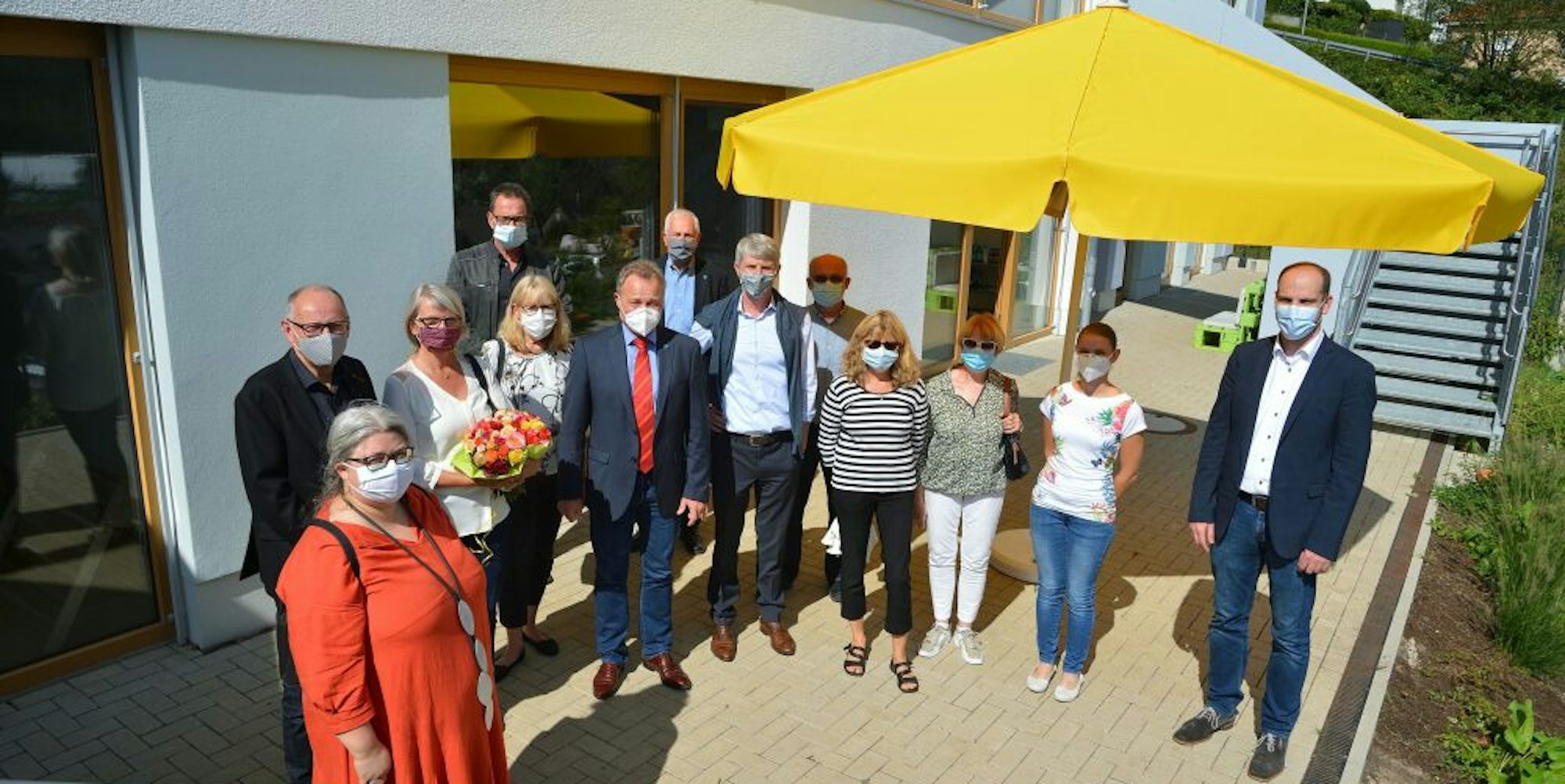 Im Anschluss an die offizielle Eröffnung unternahmen die Gäste noch einen Rundgang durch die Räume der neuen Kindertagesstätte mit den Gruppenräumen, den Gemeinschaftsflächen und der Turnhalle im oberen Stockwerk. Auch der Garten und der Außenspielplatz wurden bewundert, die auf dem steil ansteigenden Gelände geschickt angelegt sind.