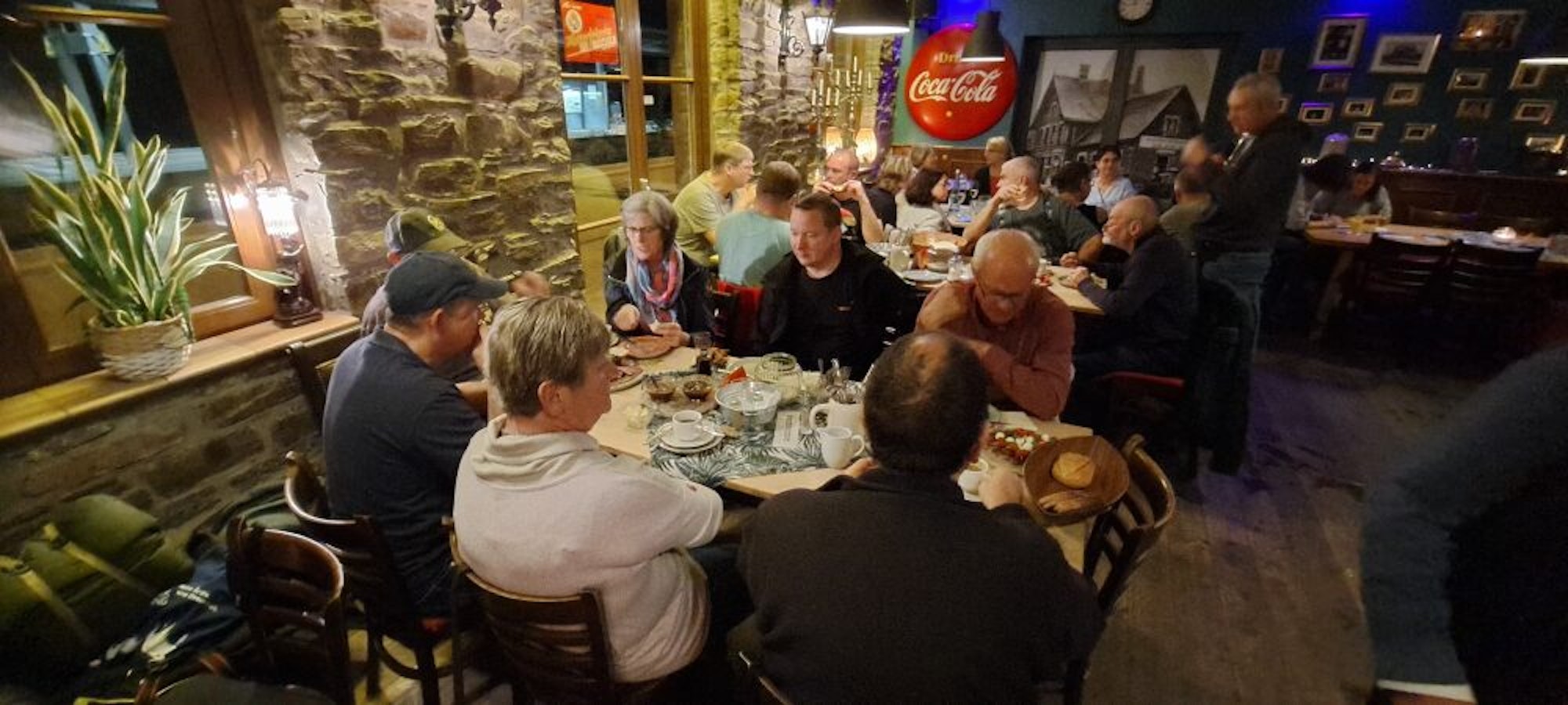 Zwei Tage lang sind die 19 Hilfstransporteure ins mehr als 1600 Kilometer entfernte Sebeș unterwegs gewesen. Um Mitternacht haben sich die Ehrenamtler zum Frühstück getroffen, das Kerstin Engelke im Restaurant Stadtmitte ausgegeben hat – vom 16-jährigen Schüler Sammy Gerliz, der für die Tour in der Schule Sonderfrei bekommen hat, bis zum 81-jährigen Vorsitzenden der Humanitären Hilfe Overath, Norbert Kuhl.