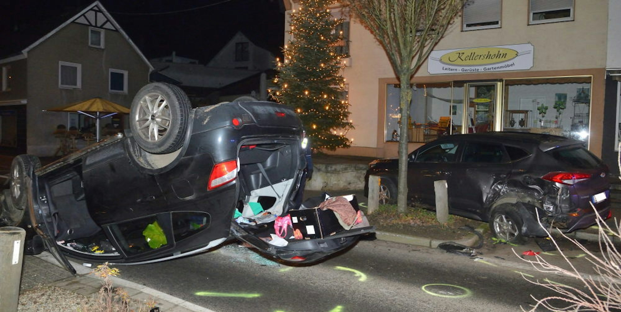 Fahrerin war alkoholisiertAuto landet bei Unfall in Overath auf dem Dach