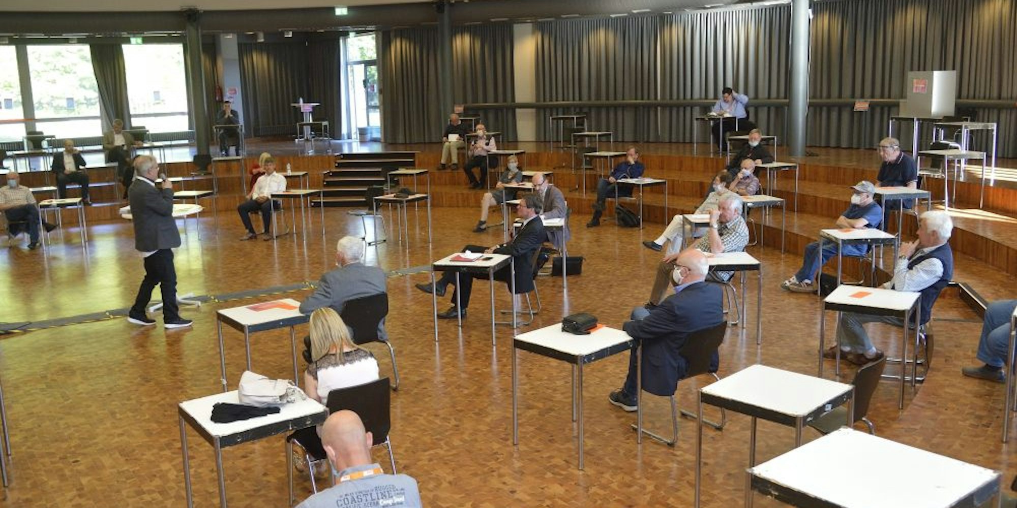 Ohne Distanz geht es nicht: Begrüßt von Hardy Kohkemper, traf sich am Donnerstabend die Overather CDU zur Wahlversammlung.