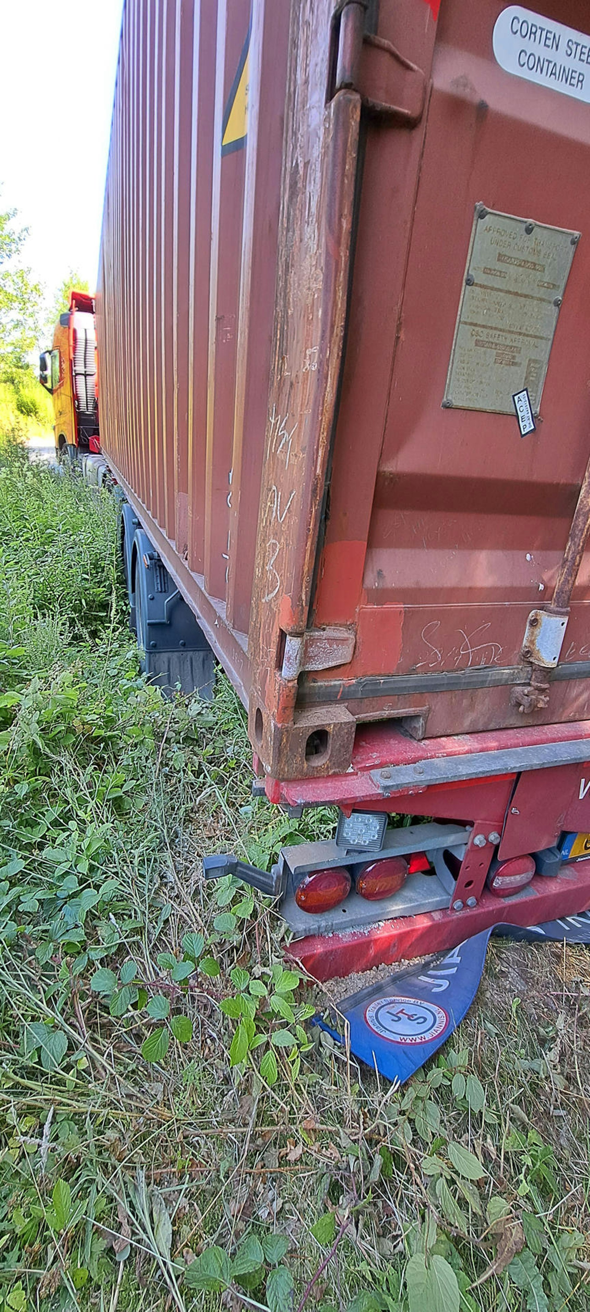 Aufgesetzt: Der Auflieger des 40-Tonners sitzt fest.