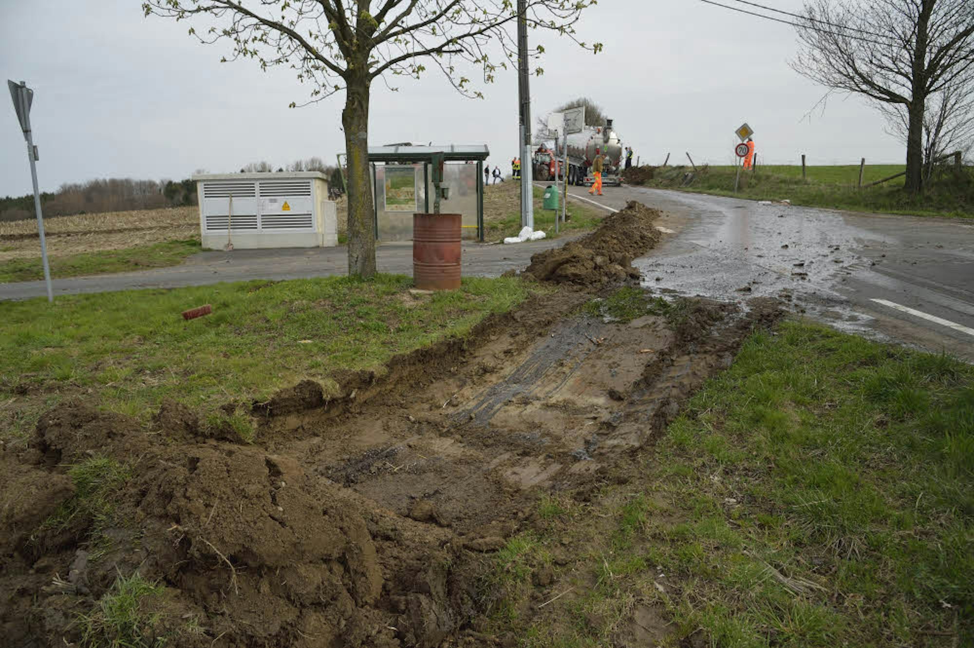 Um Gülle und auslaufende Betriebsstoffe aufzufangen, wurden auf der Straße Erdwälle errichtet.