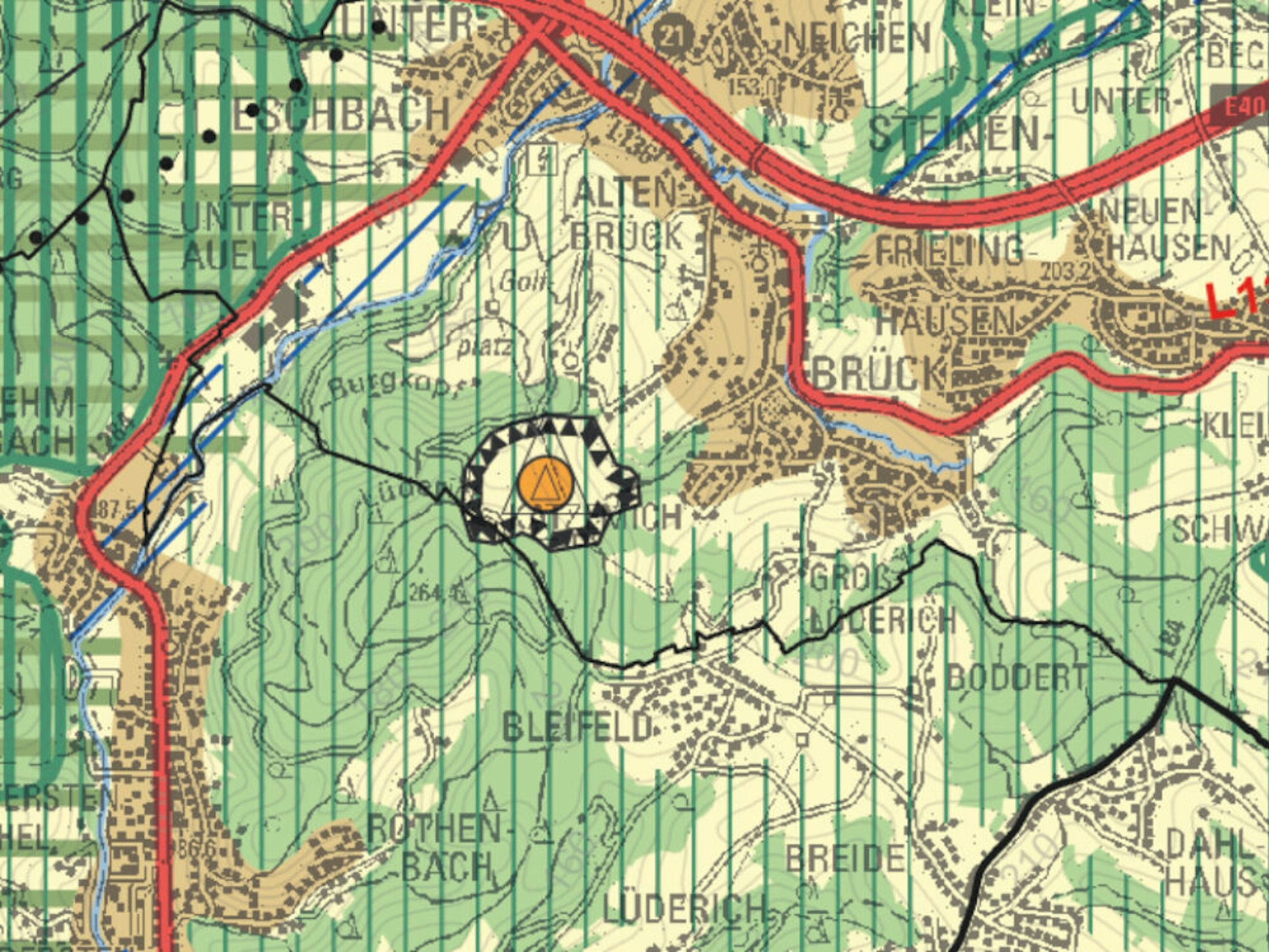 Im Entwurf des neuen Regionalplans ist die Ende 2019 geschlossene Erddeponie Lüderich weiter als Deponiefläche (Dreieck) ausgewiesen.