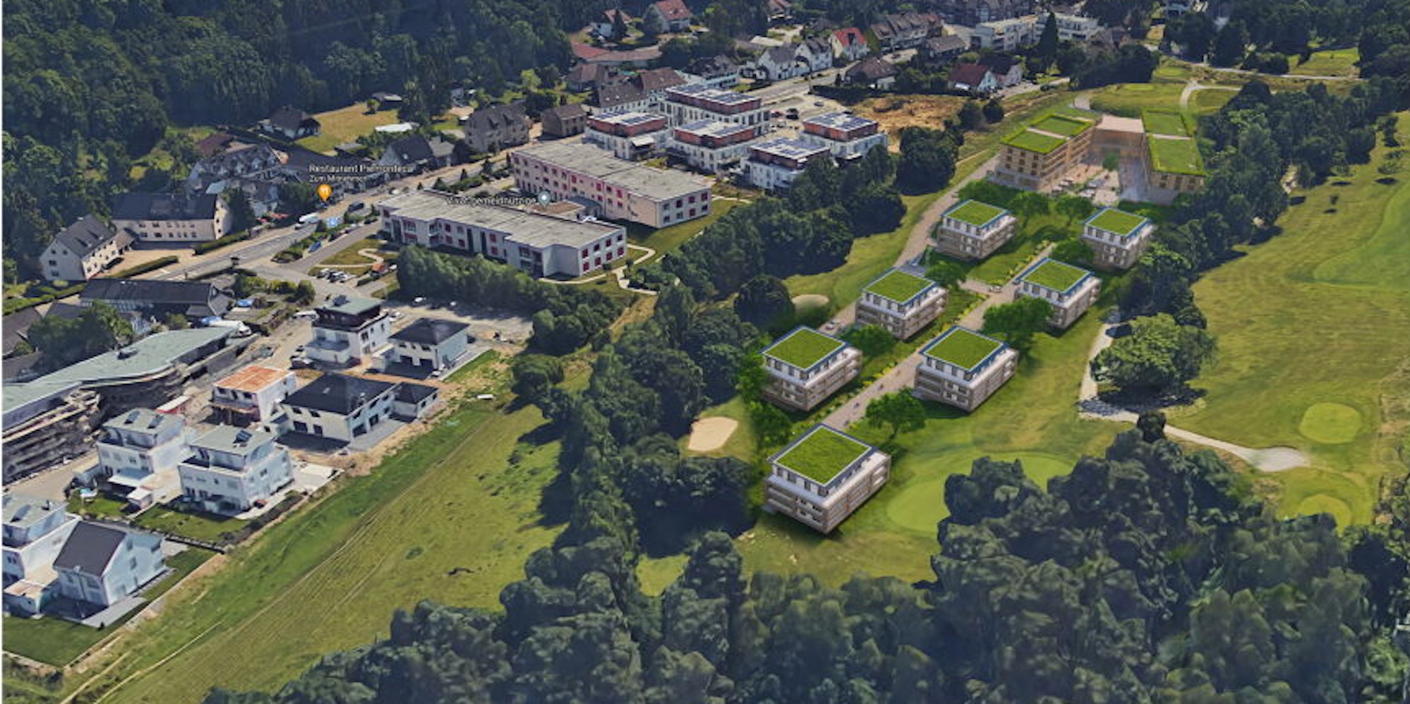 Es ist jedoch nicht nur ein Hotel für golfbegeisterte oder Messe-Gäste, das im neuen Planentwurf steht – hinter dem Hotelgebäude sollen sieben Mehrfamilienhäuser entstehen, die für rüstige Senioren vorgesehen sind. Sie sollen die Einrichtungen des Hotels mitnutzen können. „Die Idee ist die einer Art Service-Residenz“, so Henrich-Bandis, „die Bewohner der Häuser können dann beispielsweise das Spa im Hotel mitnutzen oder andere Services in Anspruch nehmen.“