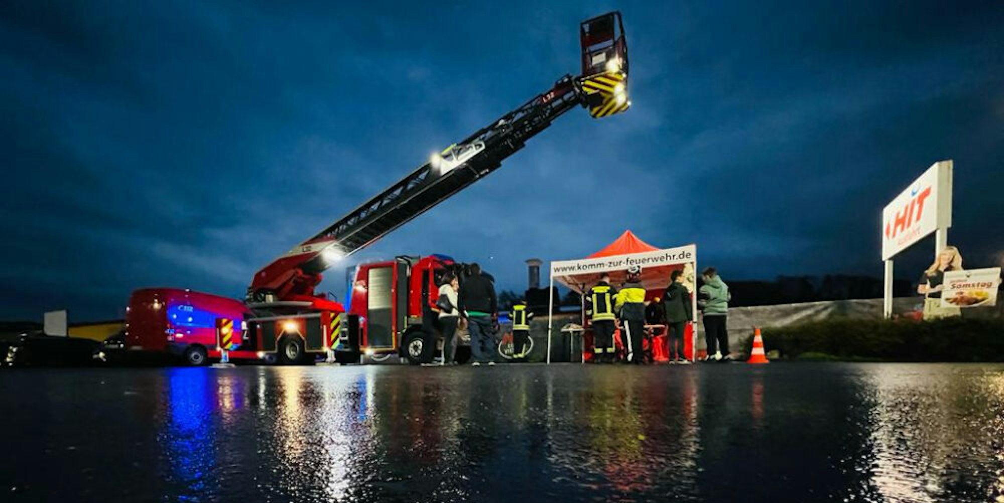 Auf dem Parkplatz vor dem Supermarkt hatte die Feuerwehr am Freitagabend unterdessen zudem ihren Stand zur Mitgliederwerbung aufgebaut, um die Arbeit der Feuerwehr Bürgerinnen und Bürgern näher zu bringen und das eine oder andere neue Mitglied zu gewinnen.