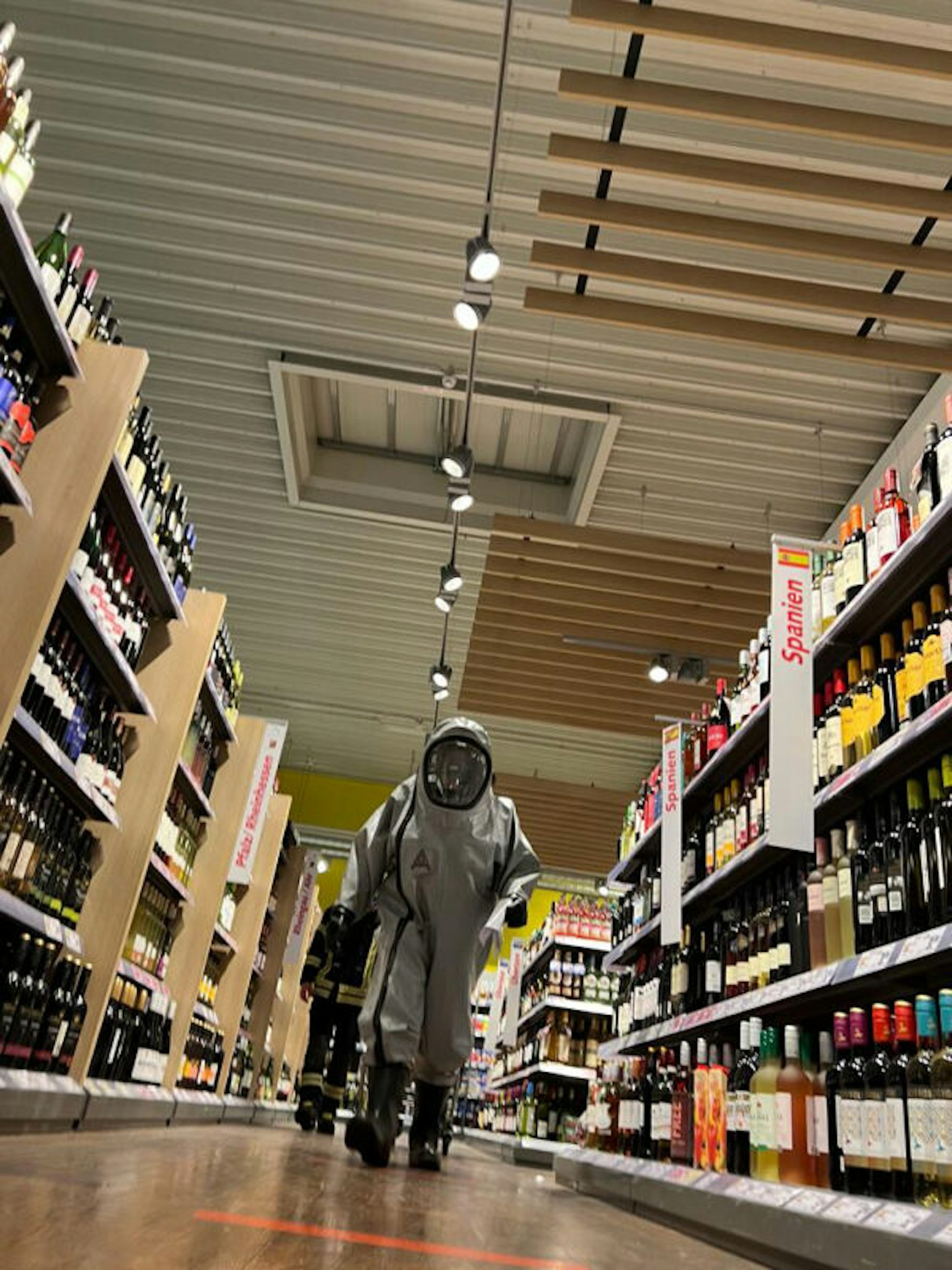 Das Einkaufen im Chemikalienschutzanzug, kurz CSA, sorgte nicht nur für viel Aufmerksamkeit. „Es galt gleichzeitig als Übung für unsere Kameraden, um etwas Feinmotorik zu erlangen“, so ein Sprecher der Feuerwehr.