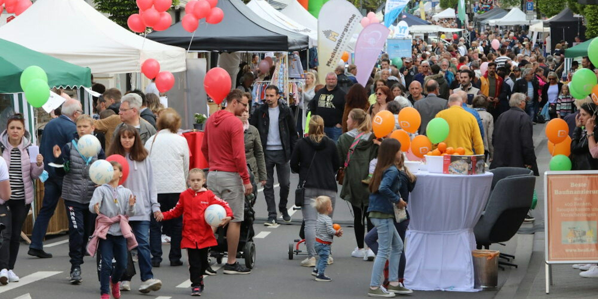 10 000 Besucher tummeln sich nach Schätzung von Alexander Bücken von der Werbegemeinschaft „Einkaufen in Overath“ den Tag über zwischen den 49 Ständen auf Steinhofplatz und Hauptstraße sowie auf der Trödelmeile An den Gärten.