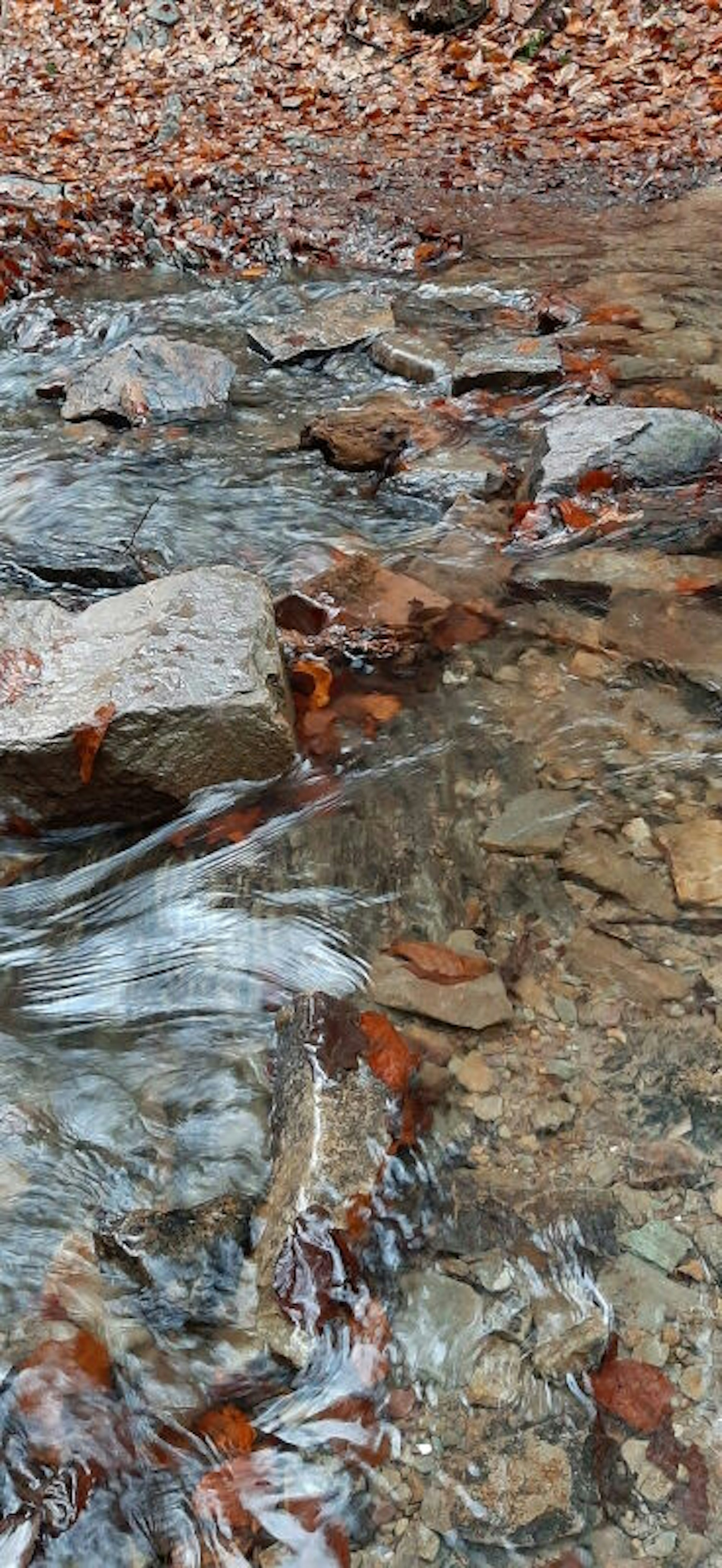 Hier muss der Bömericher Bach auf Steinen überquert werden.