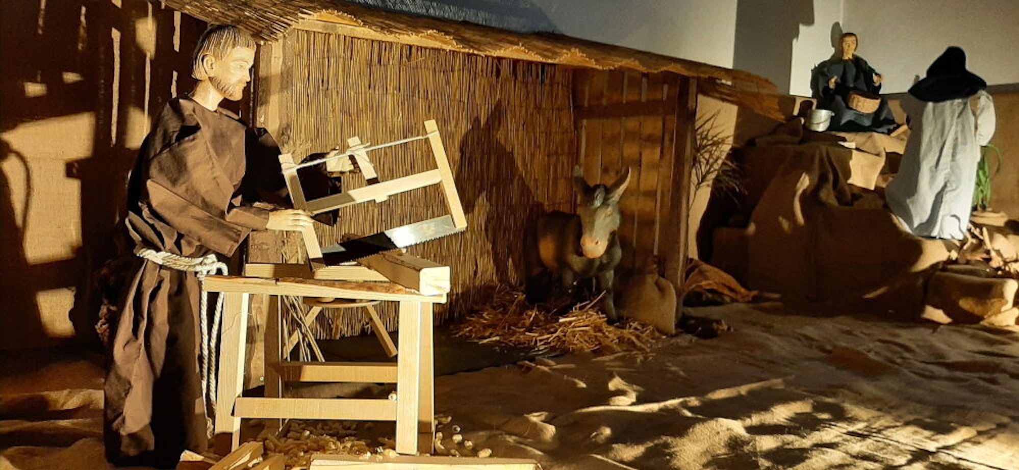 Noch gehört der Stall der Krippenlandschaft in der Kirche St. Michael ganz den Tieren – und dem Schreiner . . .