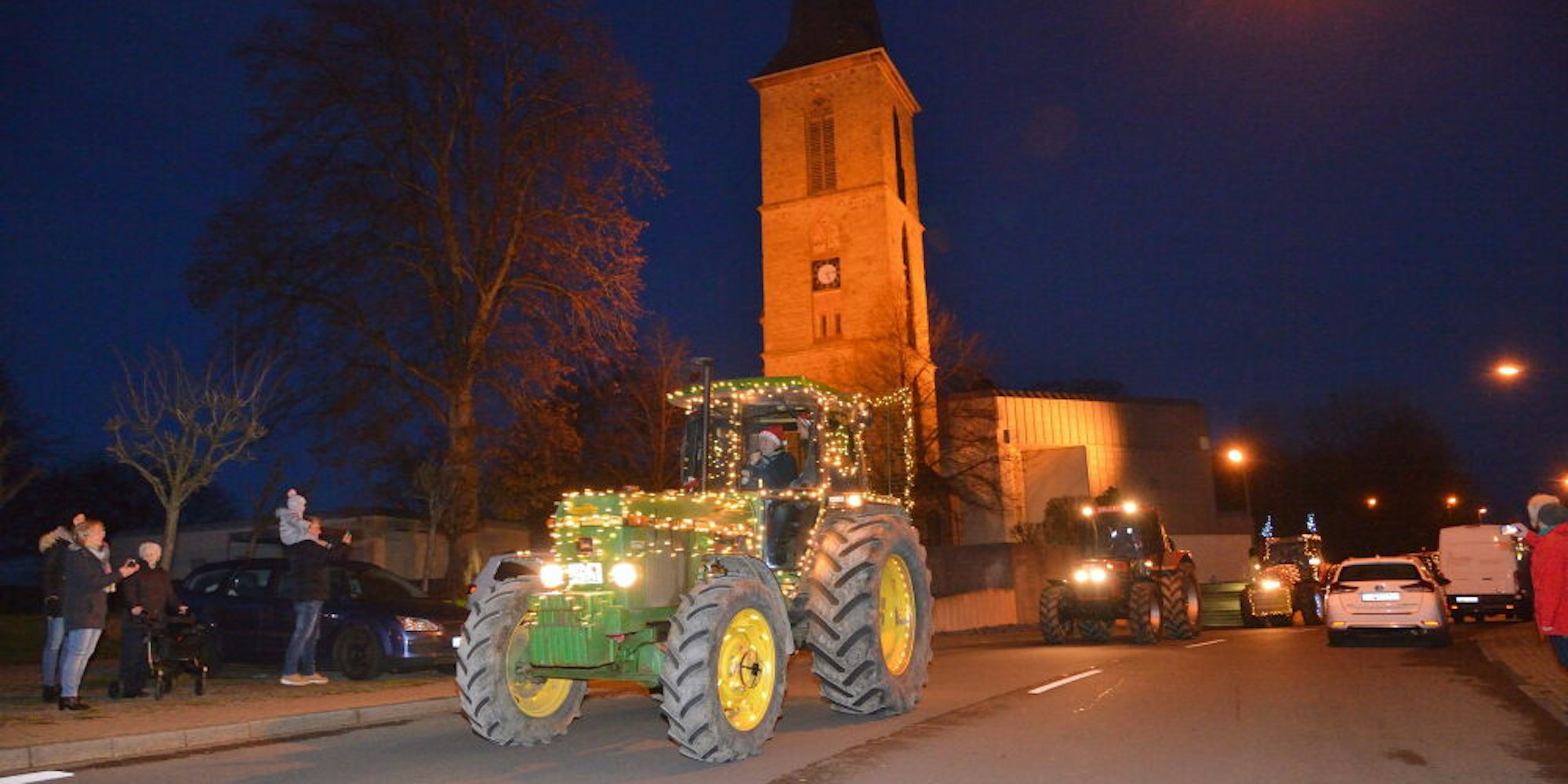 Aus Dabringhausen wird ein Motivwagen vom Karnevalsverein herangekarrt. „Der hat eine Lautsprecheranlage, damit wir schöne Weihnachtsmusik vor den Leuten spielen können“, so Mühlinghaus. Aus Odenthal beteiligt sich die Landwirtin Maren Dünner mit ihrem Lichterketten-Trecker: „Unterwegs haben wir schon strahlende Kinderaugen gesehen. Das ist es, was wir wollen: In der Coronazeit den Alltag versüßen – die Bauern bringen Licht ins Dunkle.“