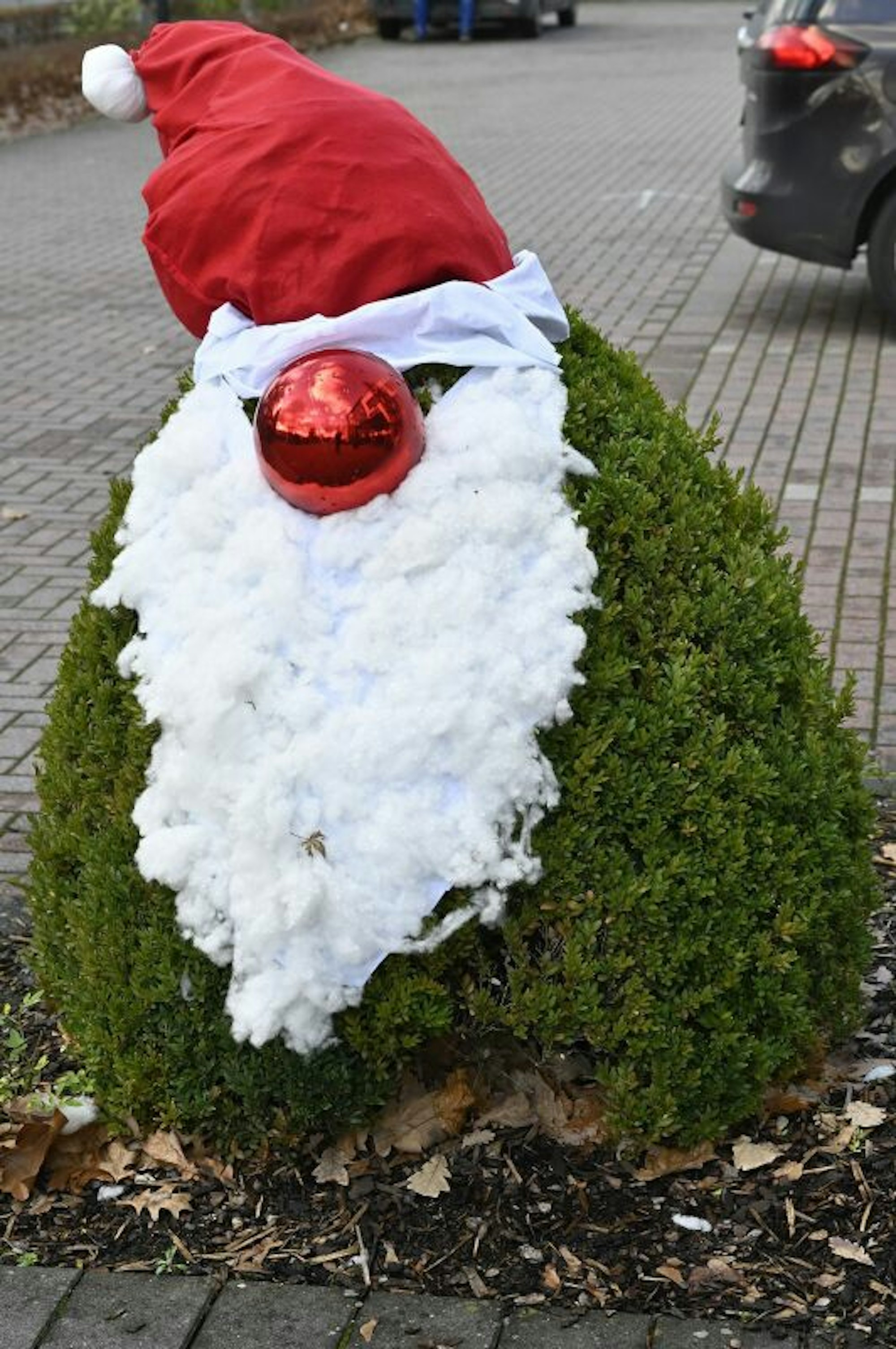 Ein Busch als Weihnachtsmann, entdeckt in Heidkamp.