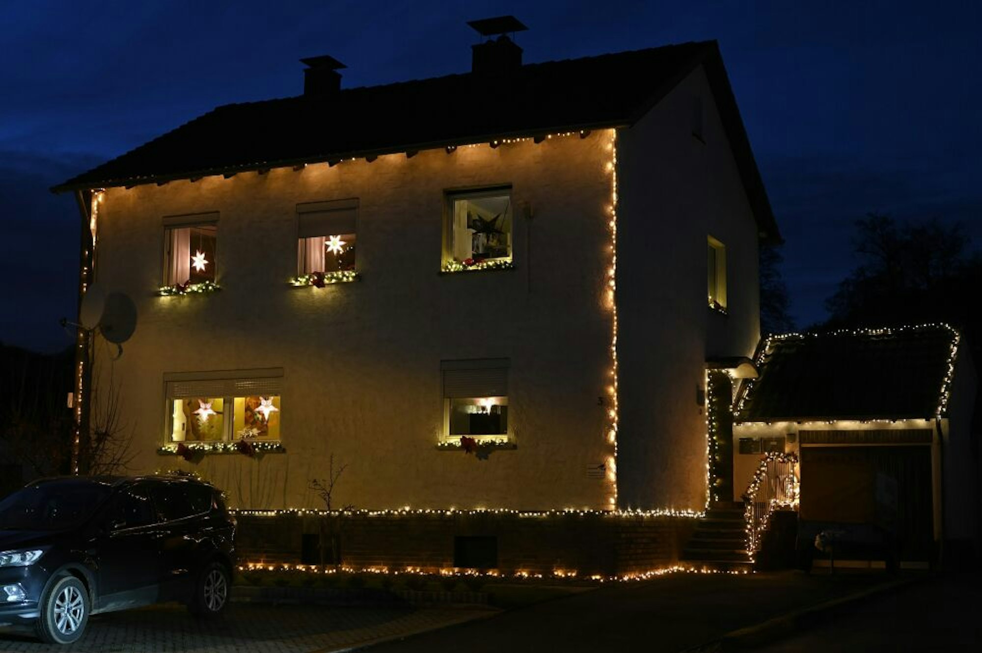 Lichterketten bis unters Dach: Wohnhaus in Overath-Immekeppel.