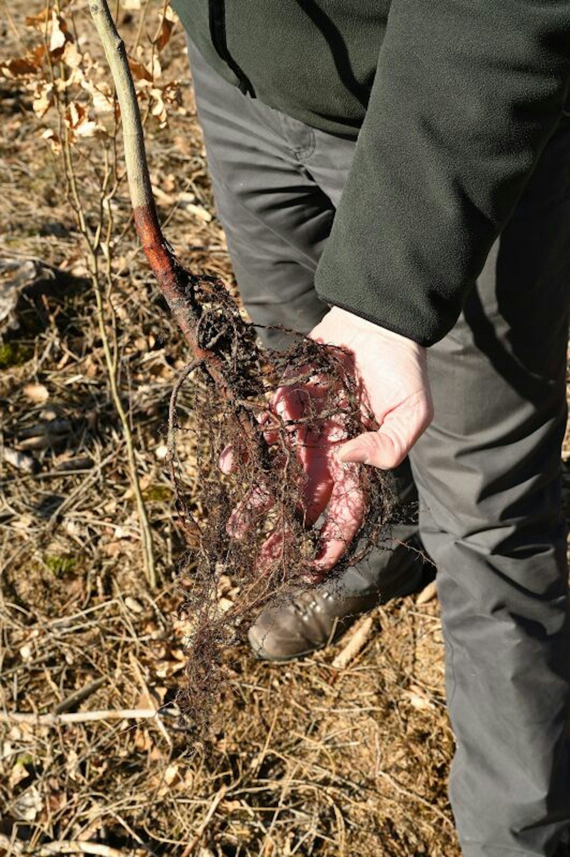 Die zarten Wurzeln einer neugepflanzten Eiche.