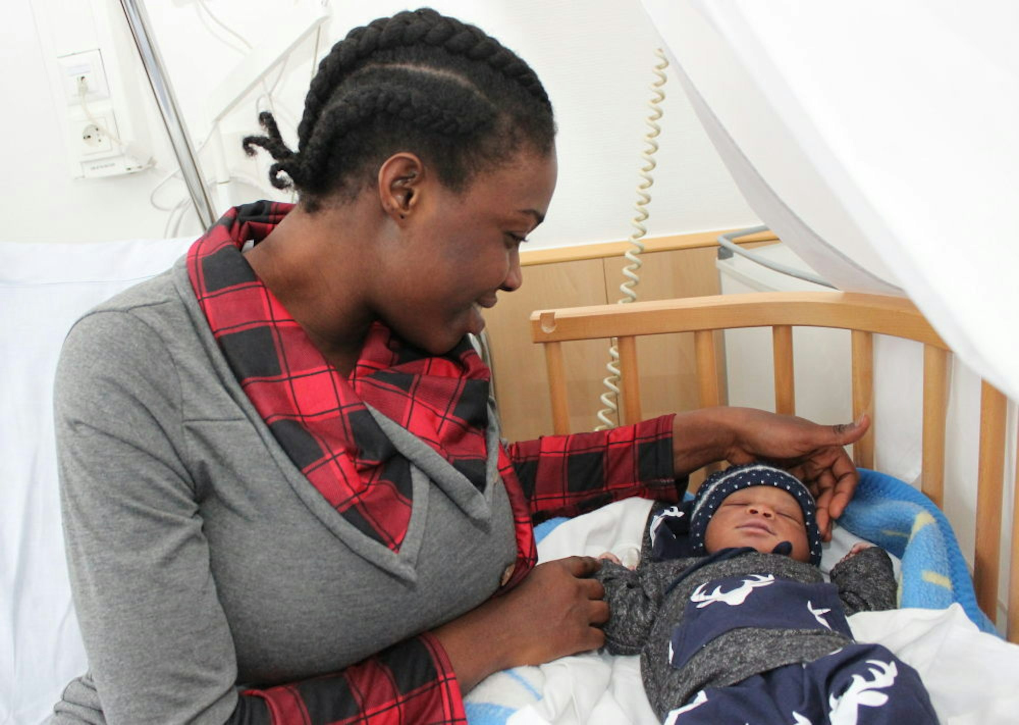 Die Familie von Aboubacar Saumaoro lebt seit zwei Jahren in Deutschland. Er kam um 8.06 Uhr auf die Welt, wiegt 3860 Gramm und ist 52 Zentimeter groß. Es war eine lange Geburt, ins VPH kamen die Eltern auf Empfehlung der Hebamme.