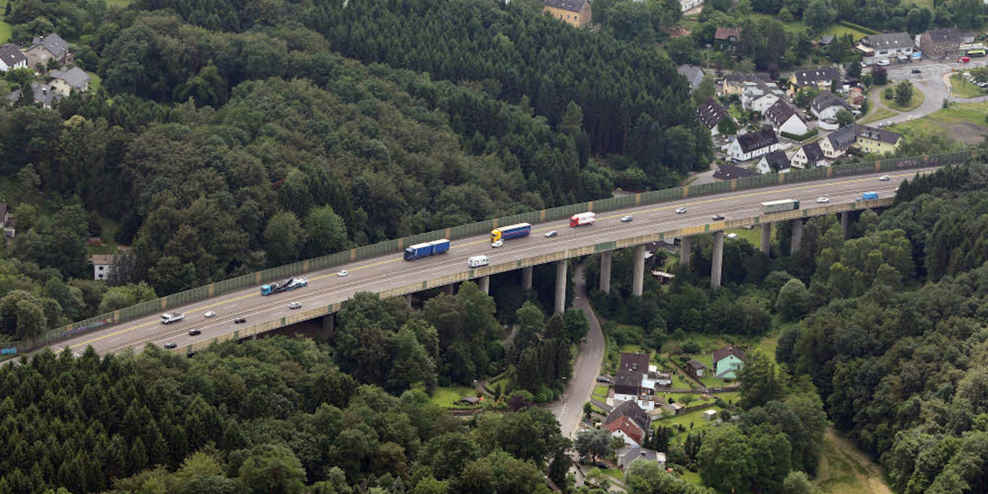 Das 30 Meter hohe Bauwerk muss wie berichtetet verstärkt werden, da sich seine Belastung durch den Schwerlastverkehr in den vergangenen Jahrzehnten enorm erhöht hat. Zurzeit sind in Fahrrichtung Köln der Standstreifen und in Fahrtrichtung Olpe die rechte Spur gesperrt. „Aber nicht, weil Gefahr im Verzug war“, wie Landesbetrieb-Sprecher Norbert Cleve erläutert hatte. Die Sperrung des Seitenstreifens sei „nicht aus statischer Sicht erfolgt, sondern um die Belastung der Brücke zu verringern und so möglicherweise entstehende Schäden nach hinten zu schieben, um Zeit zu haben, die Brücke zu sanieren.“