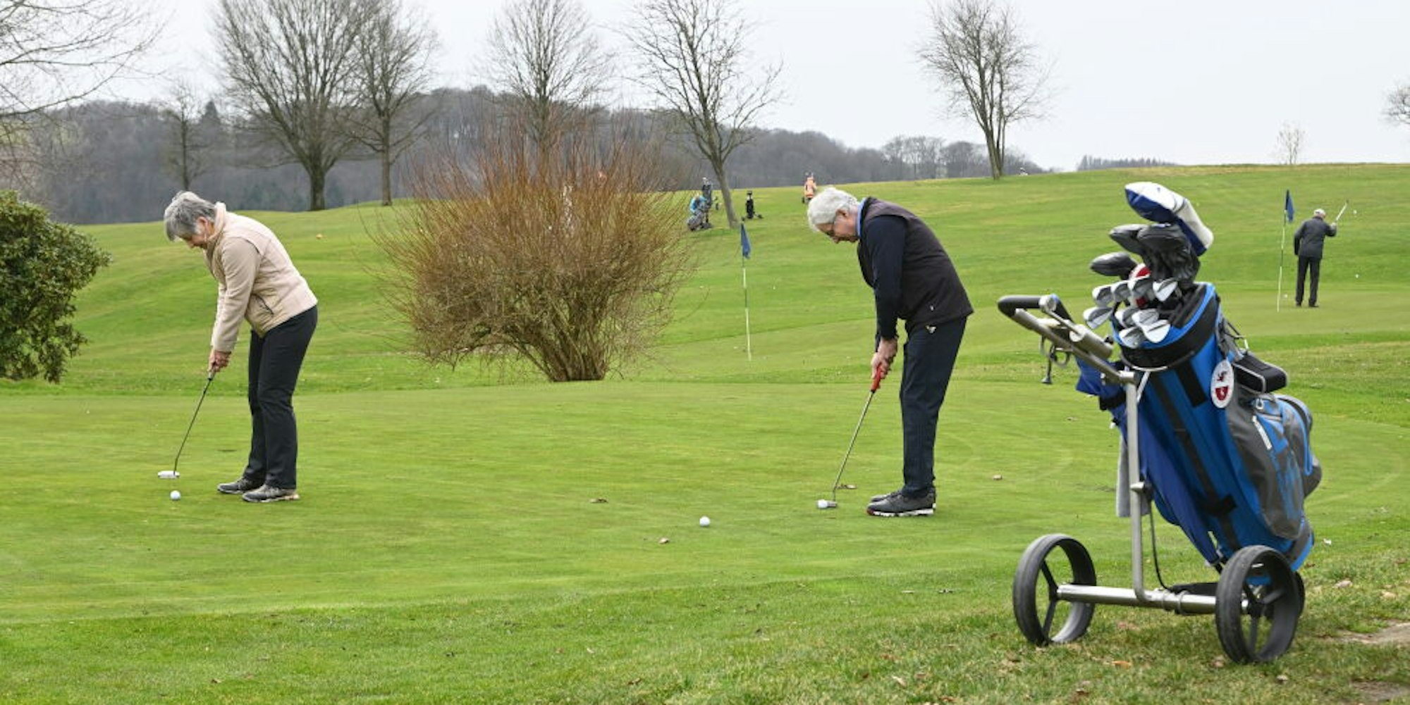 Auch auf der Golfanlage in Kürten waren am Montag die Golfer und Golferinnen wieder am Start, darunter auch Otto Fell, der langjährige Stadtdirektor von Bergisch Gladbach und unermüdliche Hobbysportler. Anders als bei den Platznachbarn in Steinenbrück schickte der Golf-Club Kürten alle acht Minuten ein Zweierpaar auf den 18-Loch-Kurs. „Von 9.15 Uhr bis 15.30 Uhr sind wir heute ausgebucht“, berichtet eine Sprecherin des Clubs.