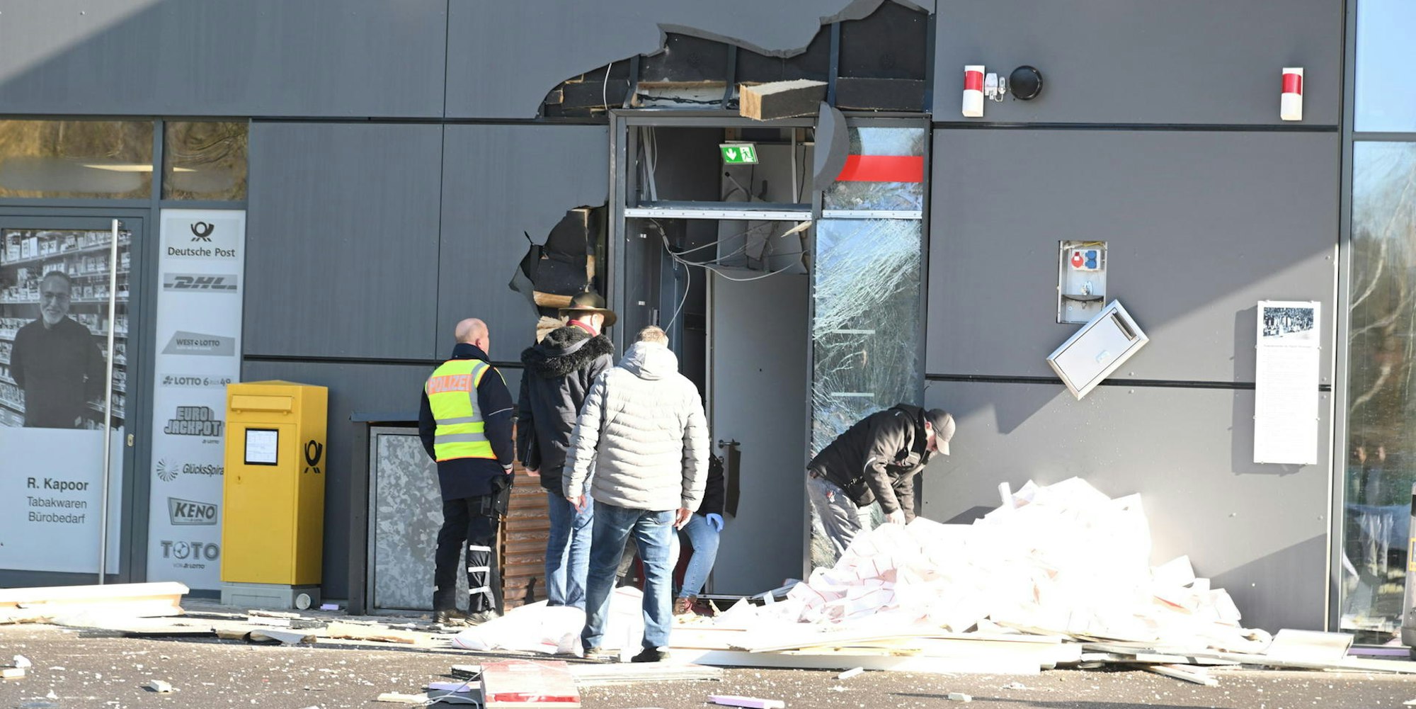 Schwer beschädigt wurde auch die Fassade des Edeka-Markts Hetzenegger durch die Automatensprengung im Vorraum in der Nacht zu Mittwoch.