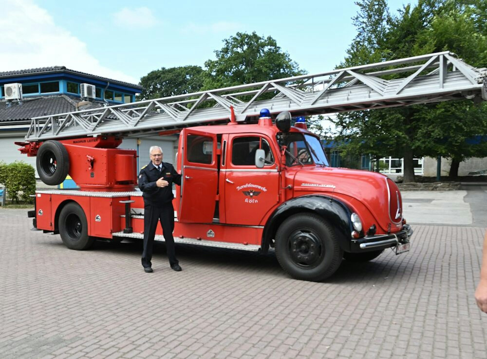 Der war nicht nur mit einer historischen Drehleiter von zu Hause in Odenthal-Eikamp abgeholt und zur Feier im Odenthaler Forum gebracht worden, sondern dort auch von einem Spalier der Leiter der Feuerwehren im Kreis sowie von seinem Stellvertreter Roger Machill und Nachfolger Martin Müller-Saidowski, Bürgermeisterinnen und Bürgermeistern, Politikern und weiteren Weggefährten empfangen worden.