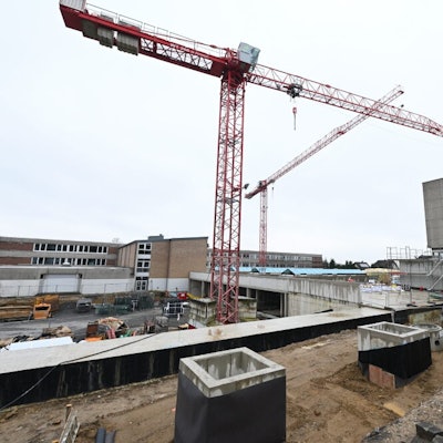 Baustelle auf der Baustelle: Die Fassadenplatten am Rösrather Freiherr-vom-Stein-Schulzentrum drohen abzustürzen, weshalb besondere Sicherungen notwendig wurden.