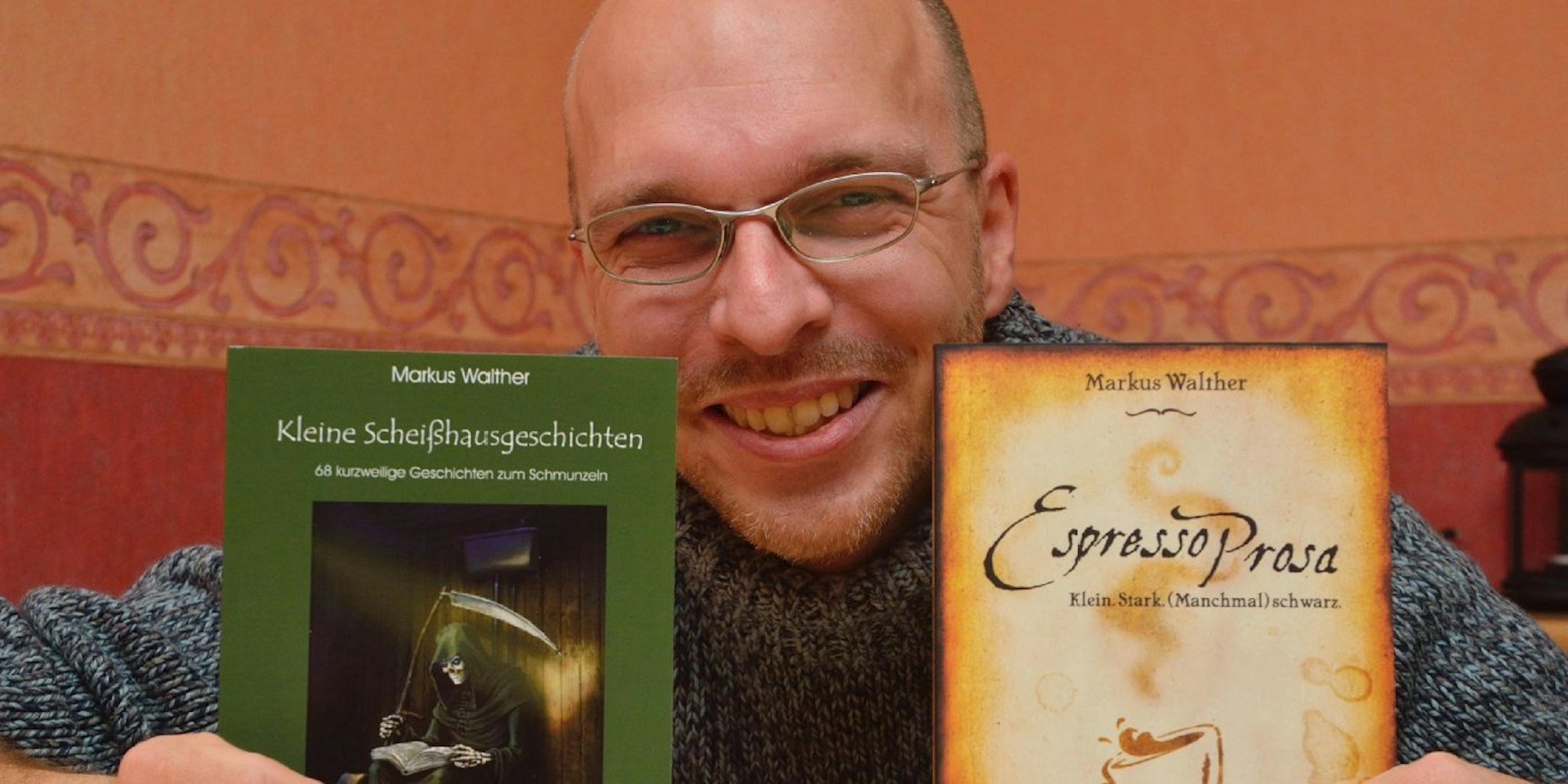 Rösrath – „Über die Fantasie die eigene Realität in Frage stellen“ soll der Leser in einigen Geschichten von Markus Walther. Der Rösrather hat sich als Autor von Kurzgeschichten eine literarische Nische erobert – er selbst spricht von „Kürzestgeschichten“. Nach seinem 2008 erschienenen ersten Buch „Gute und böse Nachgeschichten“ hat er inzwischen die beiden Bände „Kleine Scheißhausgeschichten“ und „Espresso-Prosa“ veröffentlicht. Die Titel spielen darauf an, dass zum Lesen nur eine kurze Zeitspanne erforderlich ist. „Die erste Geschichte, die ich geschrieben habe, war genau eine DIN A 4-Seite lang“, erzählt der Autor. „Ich habe mir antrainiert, eine Kurzform zu schreiben.“