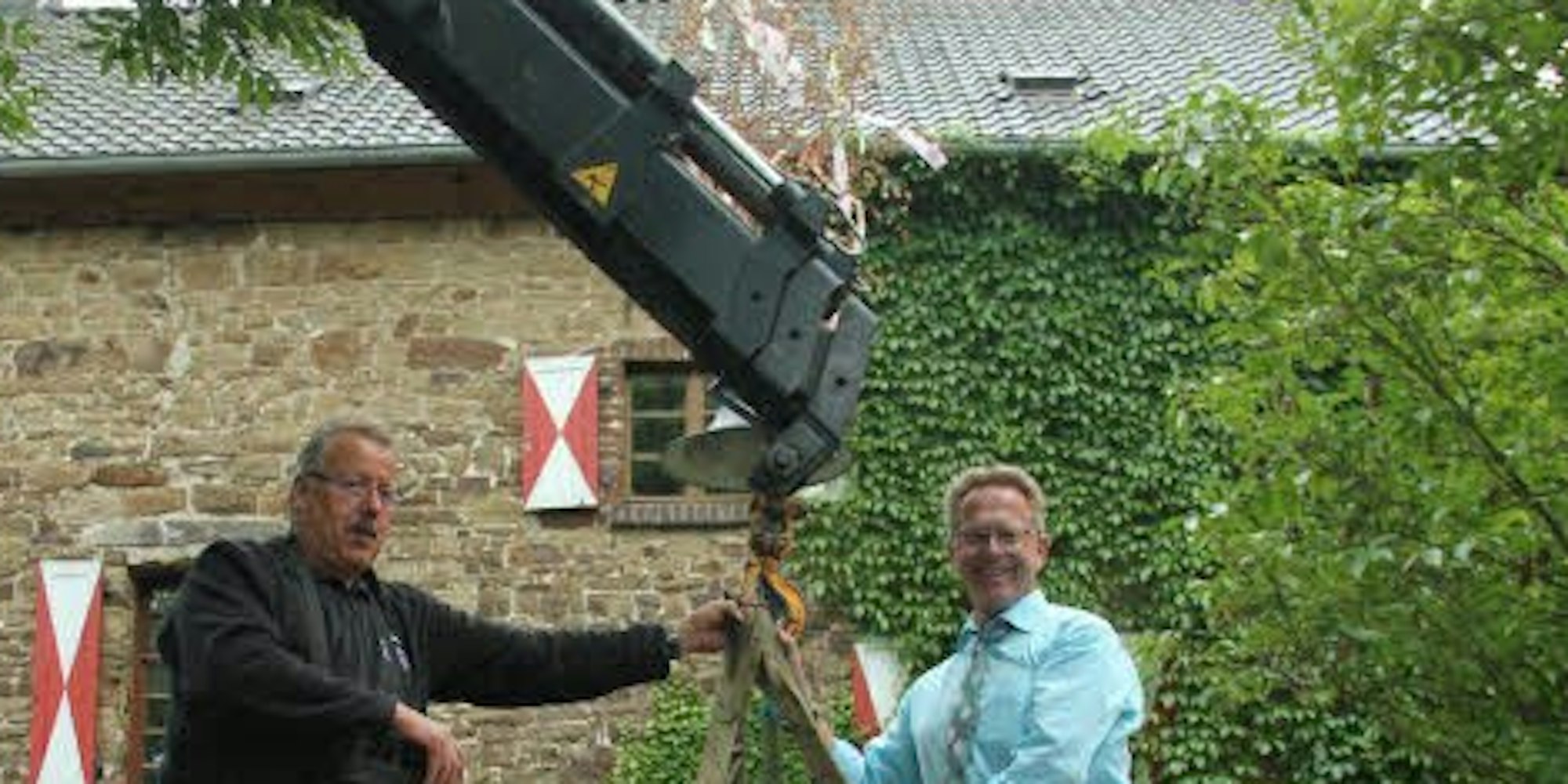 Udo Hartenfels lieferte den Balken an Nikolaus J. Sturm (r).