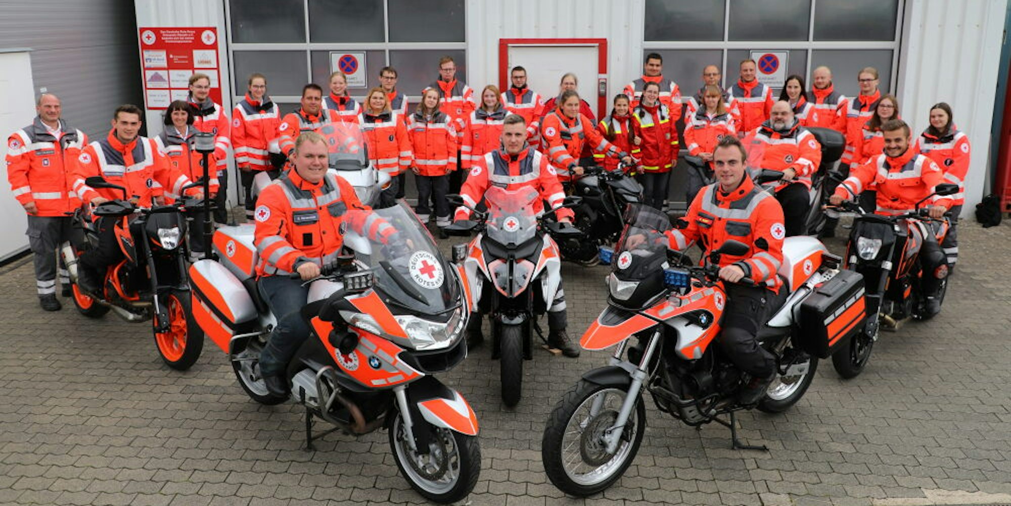„Wir haben eine Reihe junger Mitglieder, die Motorrad fahren. Da lag es nahe, Hobby und Dienst miteinander zu verbinden und solch eine Staffel zu gründen“, sagt DRK-Orts- und Kreisvorsitzende Ingeborg Schmidt, die die Idee zur DRK-Motorradstaffel hatte. Mit Hilfe eines Sponsors gelang es, zunächst eine, dann eine zweite ehemalige Polizeimaschine zu erwerben und für den DRK-Einsatz umzurüsten.