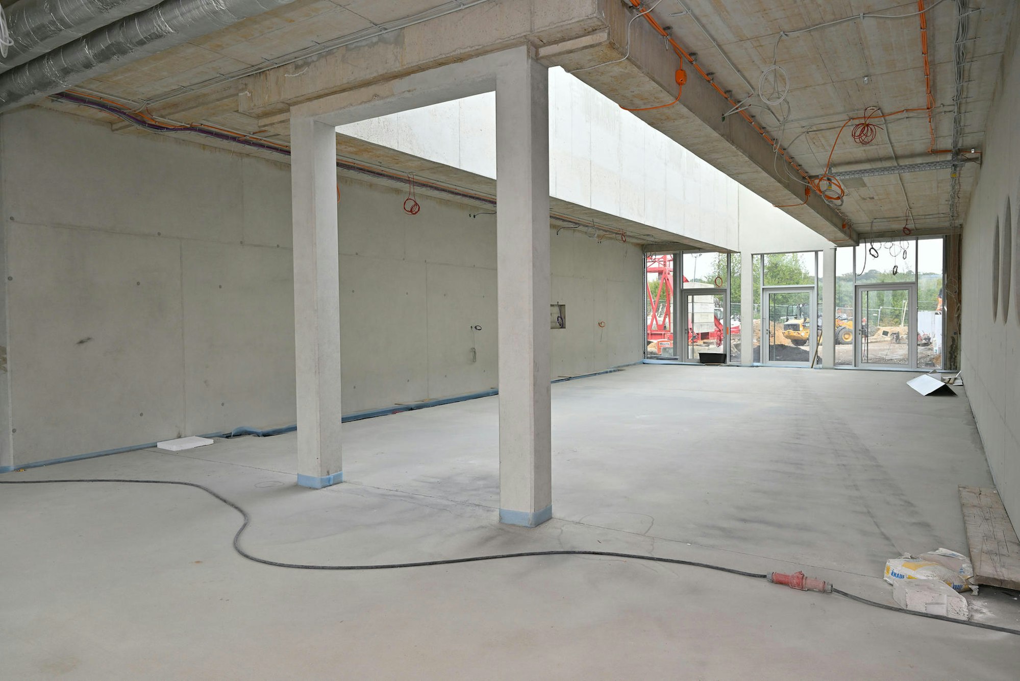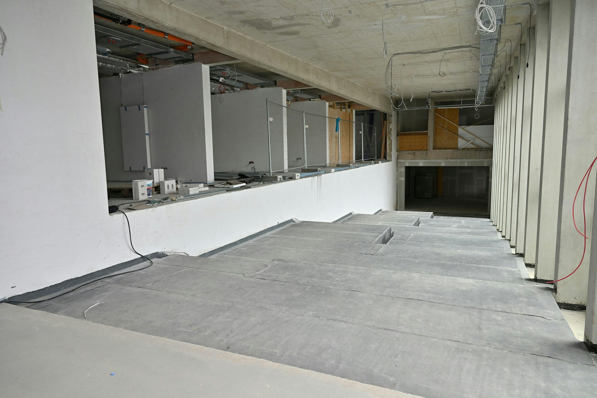 Damit soll Ende nächsten Monats ein neuer Haupteingang im Quartierszentrum zur Verfügung stehen. Die angrenzende Mensa wird bis dahin noch nicht in Betrieb gehen, aber voraussichtlich Anfang 2023: Es fehlen noch Bodenbelag und Trennwände, die Ausstattung der Küche steht laut Stadt aber „auf Abruf“ bereit, eine weitere Verzögerung wegen Lieferschwierigkeiten ist also nicht zu erwarten.