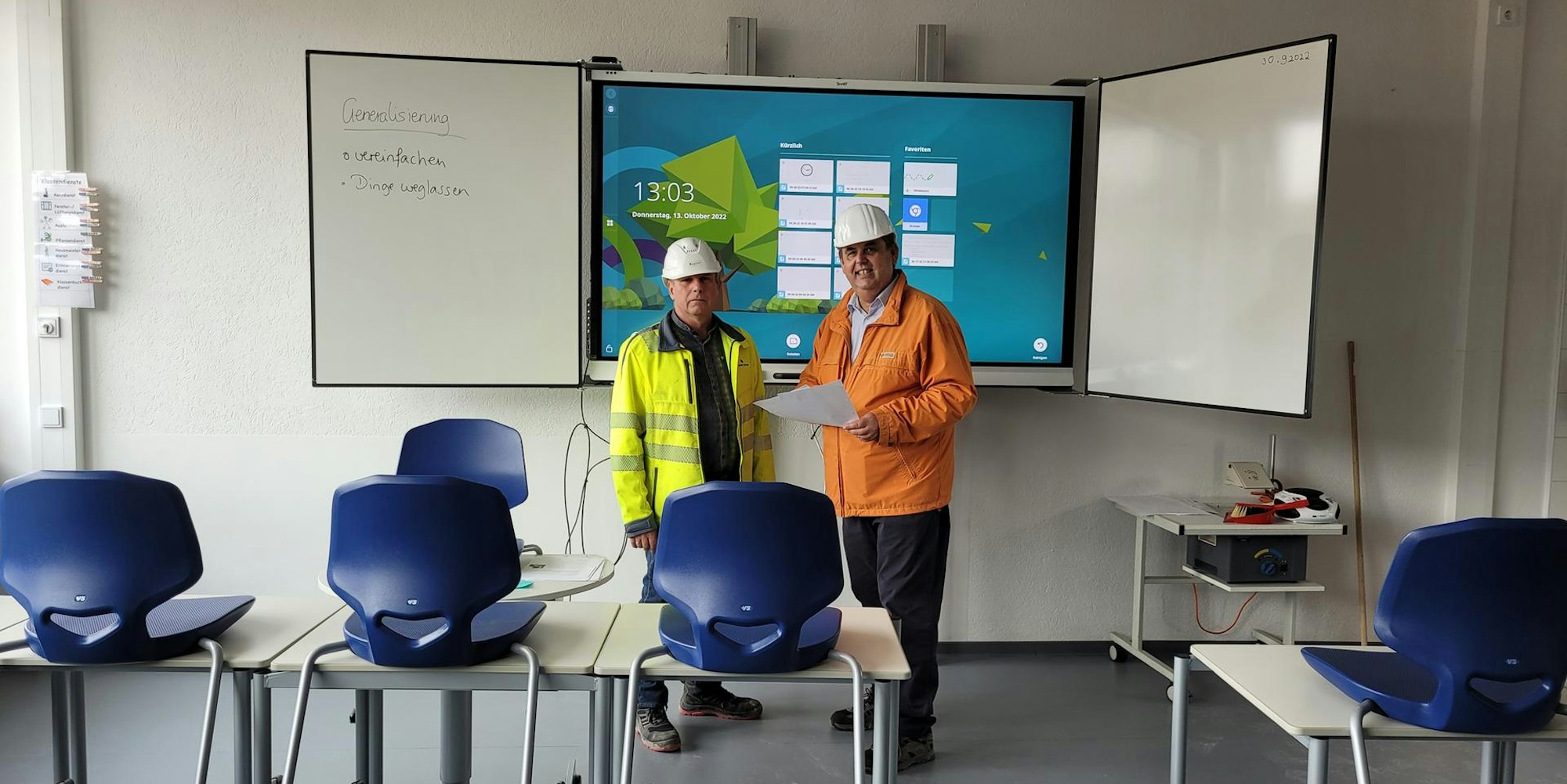 Einen neuen Standard bieten insgesamt 19 Klassenräume in Gymnasium und Gesamtschule, die bereits modernisiert sind. Neben neuen Fenstern, Heizkörpern und Fußböden sowie neuem Mobiliar steht vor allem ein „Multifunktionspanel“ im Blickpunkt – eine Verbindung von einem großformatigen Bildschirm mit Verbindung zum Internet und einer klassischen Tafel. Nach und nach sollen alle Klassenräume in dieser Weise ausgestattet werden.