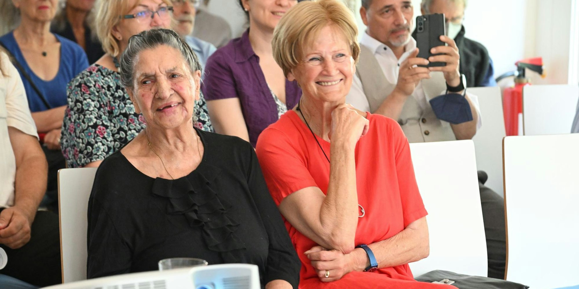 Philomena Franz (links) während der Tagung zu ihrem 100. Geburtstag.
