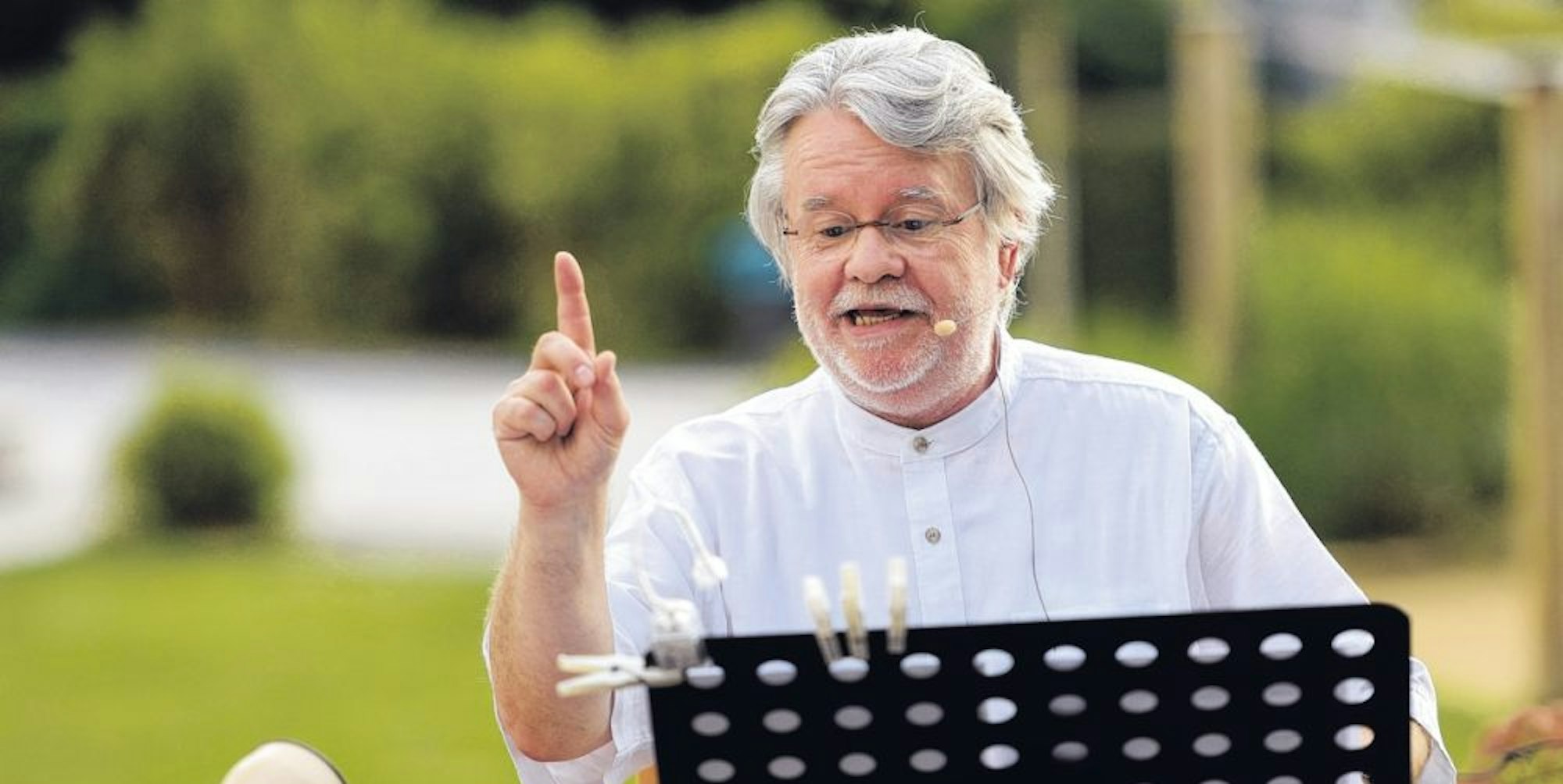 Wolfgang Wasser in Aktion, hier bei einer Lesung im Rösrather Freibad.