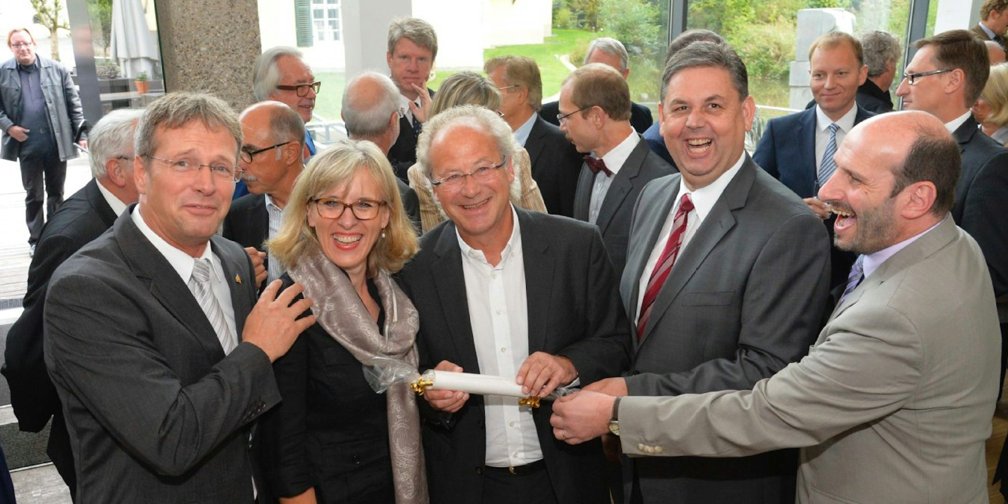 Rösrath – Höchste Anerkennung von allen Seiten wurde dem Rösrather Beigeordneten Berthold Kalsbach (Mitte) bei seinem Abschied zuteil. Bürgermeister Marcus Mombauer, Ehefrau Ute Thorn-Kalsbach sowie die Beigeordneten Ulrich Kowalewski und Christoph Nicodemus (v. l.) gratulierten ihm in der Bildungswerkstatt Schloss Eulenbroich zum Ruhestand - ebenso wie zahlreiche Gäste aus Stadtverwaltung, Politik und Wirtschaft. "Wahrhaft traumhafte" Bauprojekte seien das Ergebnis von Kalsbachs 24-jähriger Tätigkeit, sagte Mombauer.