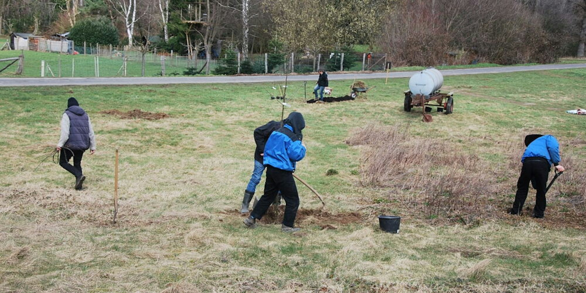 Bergisch Gladbach – Aus einem Bolzplatz ist eine essbare Wiese für alle geworden, Insekten und Menschen: mit verschiedenen Beerensträuchern, Birnen- und Apfelbäumen. Ein kleiner Wall, nur mit Himbeeren, wurde auch angelegt. „Da ist bestimmt für jeden Spaziergänger und Anwohner eine leckere Freude dabei“, zeigt sich die Bürgerinitiative Klimafreude Rhein-Berg zufrieden über ihr neuestes Projekt.