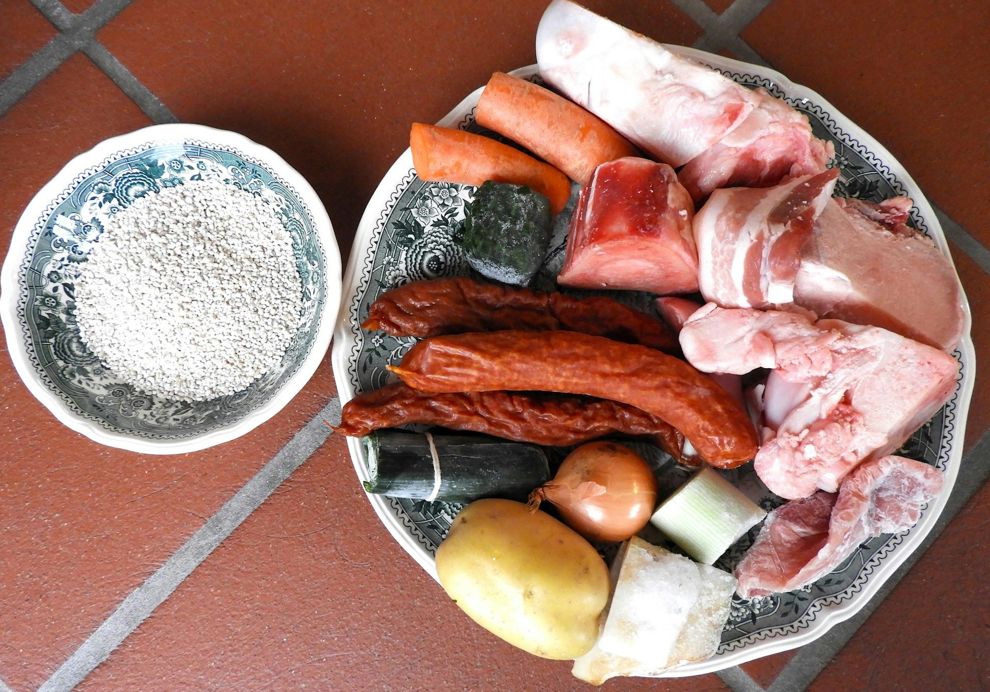 Aber erst einmal benötigt man eine Fleischbrühe aus Sand- oder Markknochen und Suppenfleisch, insgesamt circa 1 1/2 kg für vier Personen.