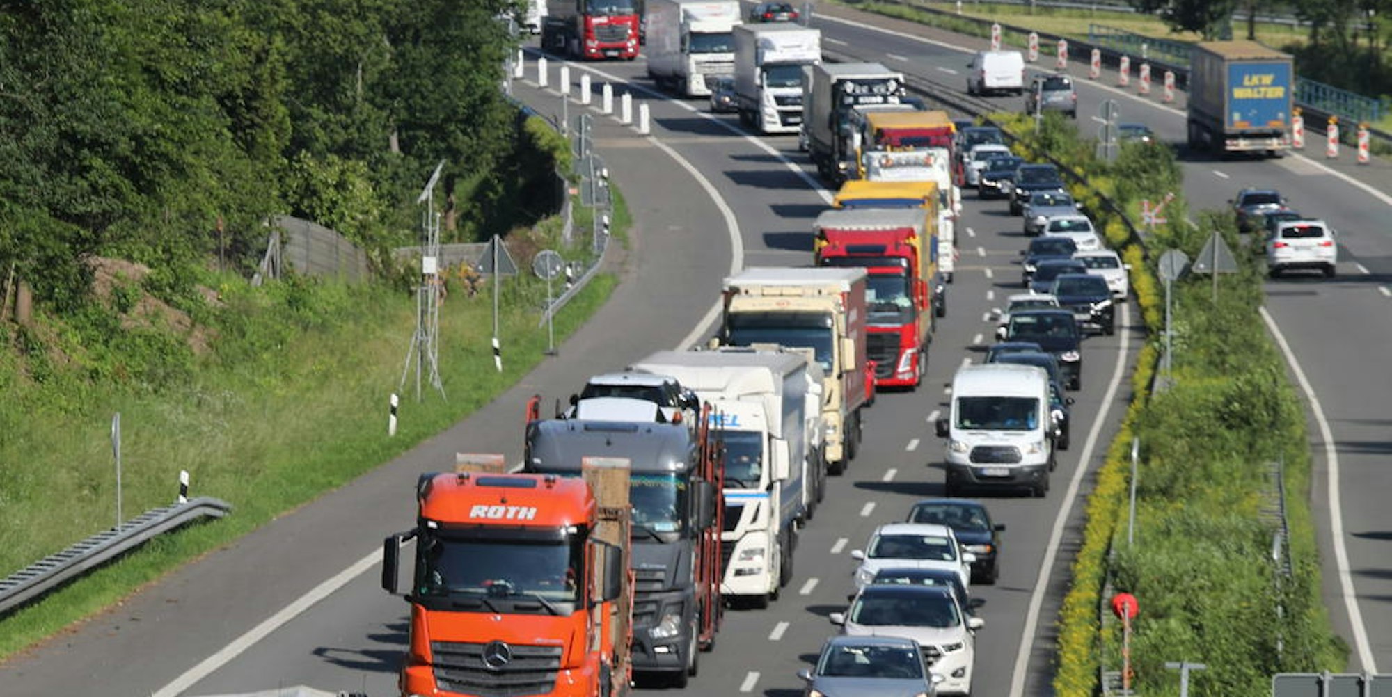 Lange Staus wie hier auf der A4 bei Untereschbach erwartet die Polizei zum Ferienbeginn.