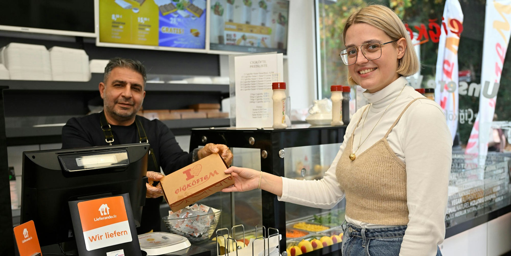 Während er mit uns spricht kommt Kundin Helena Gau in den Laden und bestellt einen Cigköftem-Wrap. Sie isst vegetarisch und trinkt keine Kuhmilch. „Käse esse ich aber sehr gerne, den kann ich nicht weglassen“, sagt sie.