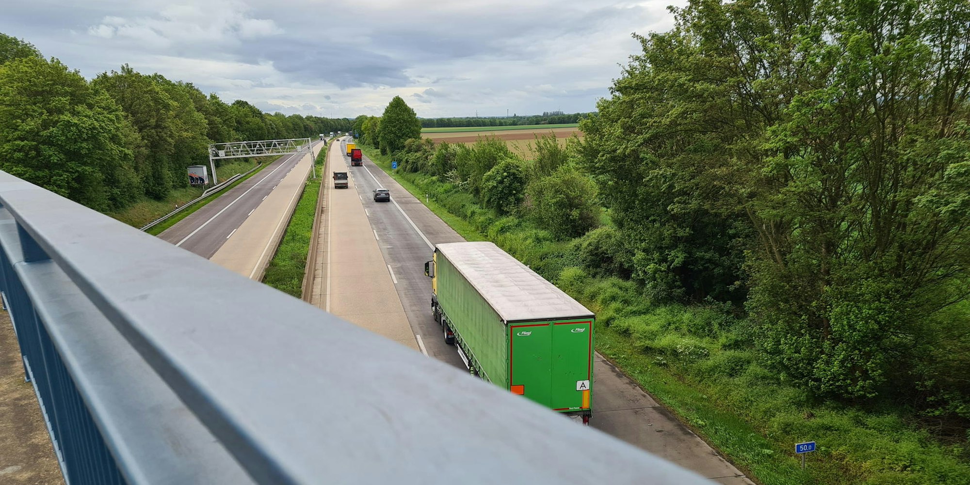 Auf dem Acker rechts der Autobahn 61 soll ein Gewerbe- und Industriegebiet entstehen.