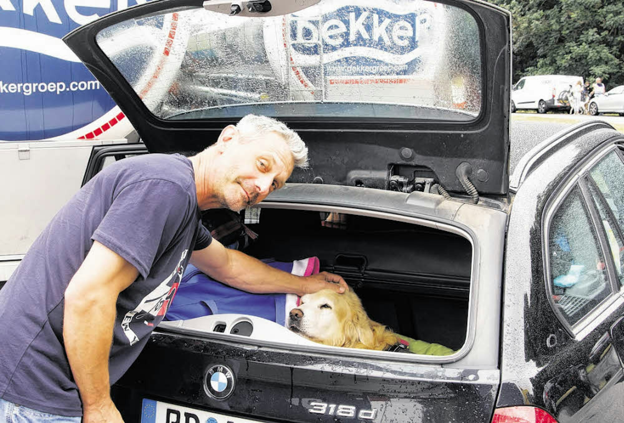 Hund und Herrchen legten eine Pause ein. Jörg Beyer war froh, am Samstagmittag einen der letzten freien Parkplätze auf der Raststätte Bedburger Land West ergattert zu haben.
