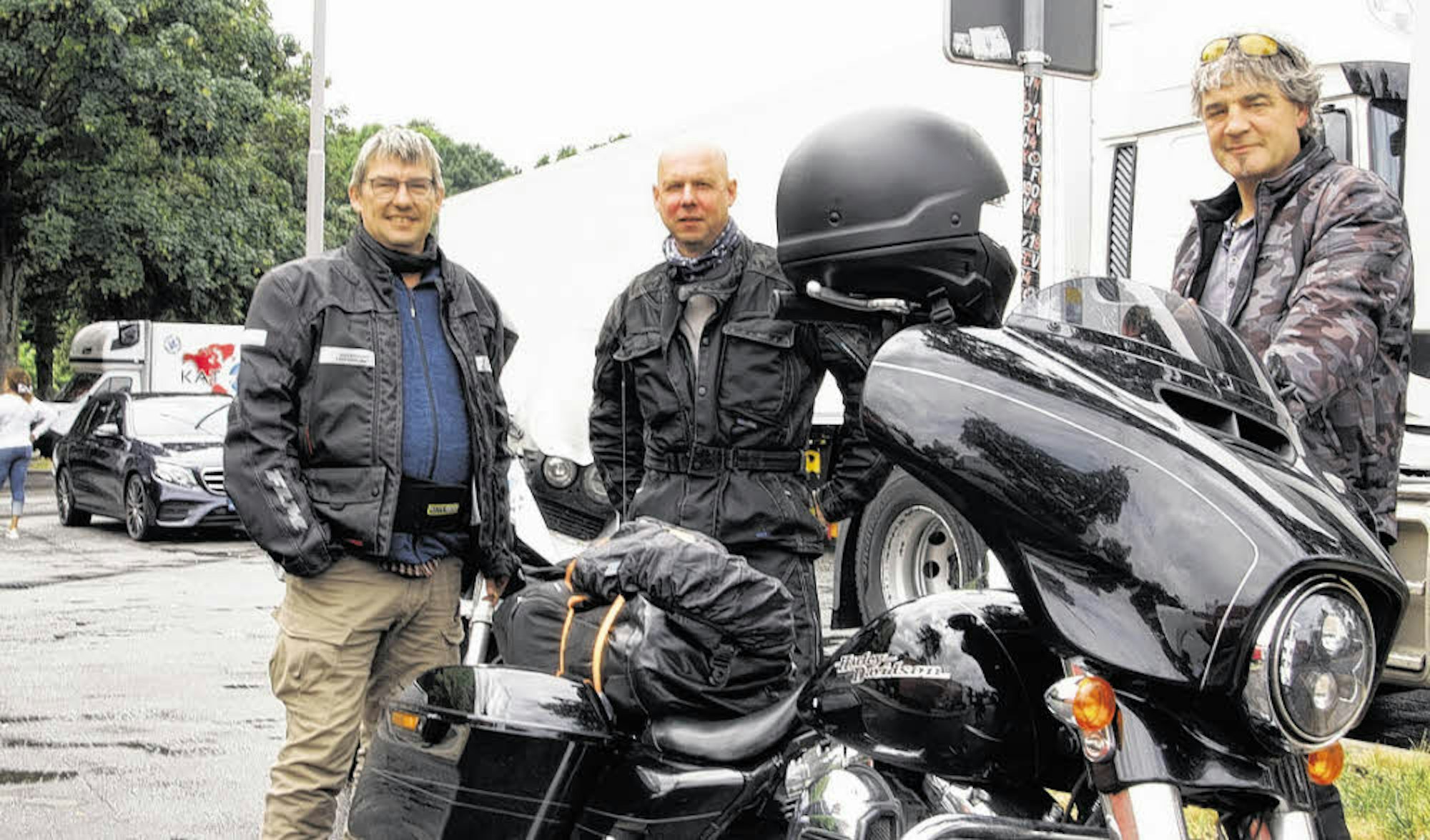Aus Schottland über Amsterdam und Bedburg zurück nach Frankfurt fuhren Jörg Bauer (l.) und seine Harley-Freunde. Sie hätten gegen ein Tempolimit auf deutschen Autobahnen nichts einzuwenden.