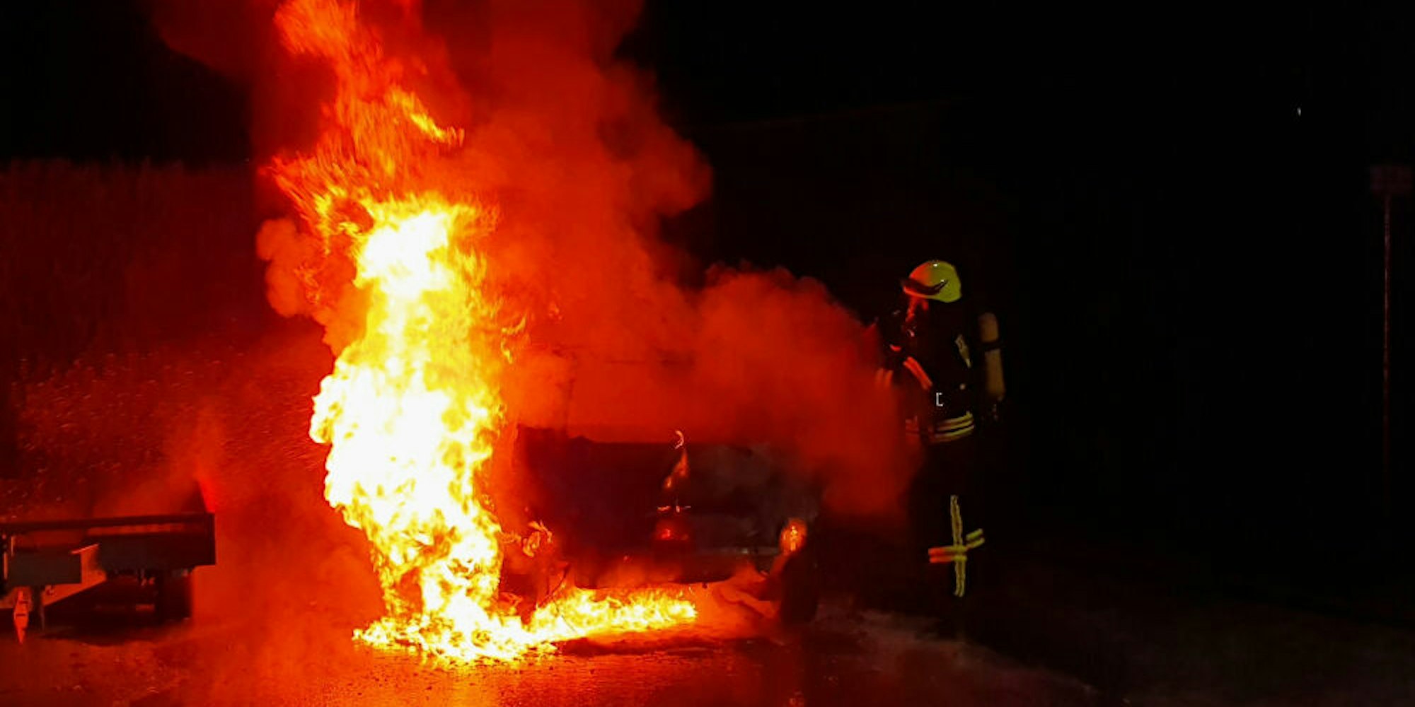 Der Mann soll von einem unbekannten Fahrradfahrer geweckt worden sein. „Der Zeuge habe angegeben, dass etwas unter seinem Vorderrad brannte.“ Der Lkw-Fahrer habe daraufhin das Feuer unter dem Spritzschutz und dem Reifen selbst mit Wasser gelöscht.